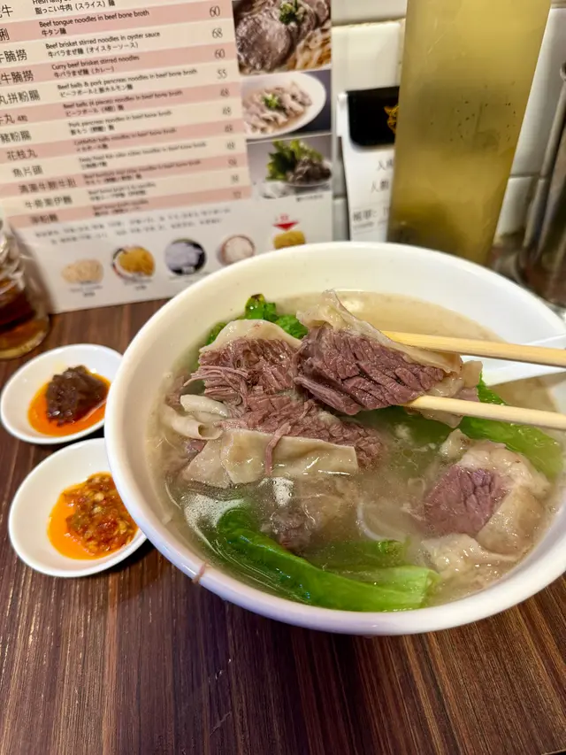 🍜【清湯牛腩河】嚐一啖湯係單純嘅牛骨湯,湯頭清帶有淡淡牛骨嘅清香味,冇畀其他香料蓋過味,原汁原味,鮮甜好味且柔和。牛腩都煮得啱啱好,牛味香濃但唔會過柴,搭埋店家嘅辣椒油,更加帶出牛腩嘅味道。普通嘅牛腩已經有呢個水準,特別嘅位應該更加出色。河粉滑得黎又唔會咁易斷。🍜【單點牛脷】稱足好大,每一片都係厚嘅。燒牛脷食得多,清湯真係第一次食。牛脷做得好軟,但又有適當嘅口感,同燒牛脷嘅口感完全唔同。查看更多