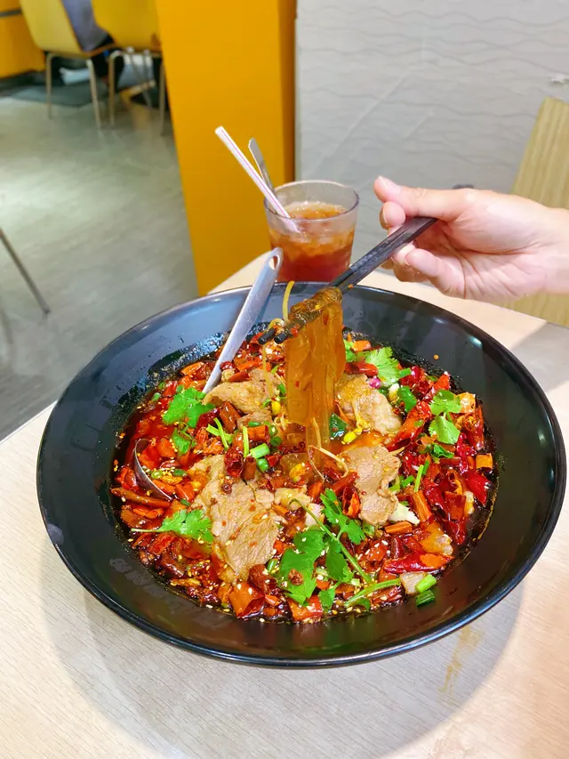 今日天氣突然涼返,突然好想食酸辣粉,所以就決定傷心一下,我哋六點前到仲有下午茶餐,叫左一個口水雞配酸辣粉($45)再加杯凍檸茶($5),望吓餐牌見到有個水煮肥牛好吸引($139),決定叫埋豐富D提早食埋晚餐,仲有好多小食想食不過驚食唔晒最後只加左酸辣土豆絲($25),全部都要中辣 🌶🌶酸辣粉保持水準,薯粉煙韌適中,酸辣湯底同Q彈嘅薯粉就係絕配,口水雞雞肉嫰滑,土豆絲惹味爽口,食辣嘢最驚唔夠辣,呢間全部都夠辣度🔥 終於等到水煮肥牛出場啦,嘩!估唔到咁大鍋,賣相非常吸引,一放上枱啲香味已經撲晒埋嚟,肥牛份量都算多入面仲有寬粉青瓜芽菜,香味夠層次同最緊要keep到食到尾都夠熱,我哋全部清晒,望住友人流晒汗同流晒鼻水個樣真係好傷心忍唔住笑咗😆💡呢餐每人$107,絕對係平食川菜嘅好選擇!見到有得買傷心辣椒油,望啲渣已經覺得正,大大樽標榜冇添加劑都係$29 ,買咗一樽返屋企,一打開好香呀,聽晚用嚟整涼拌小食先。查看更多
