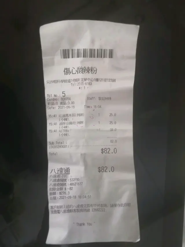 我唔鍾意呢間,星期六下晝去,之前d下午餐唔見咗,話星期六冇,已經唔開心,叫咗招牌菜傷心酸辣粉同涼拌豆腐皮紅油黑木耳,叫print張點餐紙個跛仔竟唔print話埋單會有,講咗價錢發現唔啱,原來咁樣唔計跟套餐,後叫取消話已經做咗取消唔到寸寸地查看更多