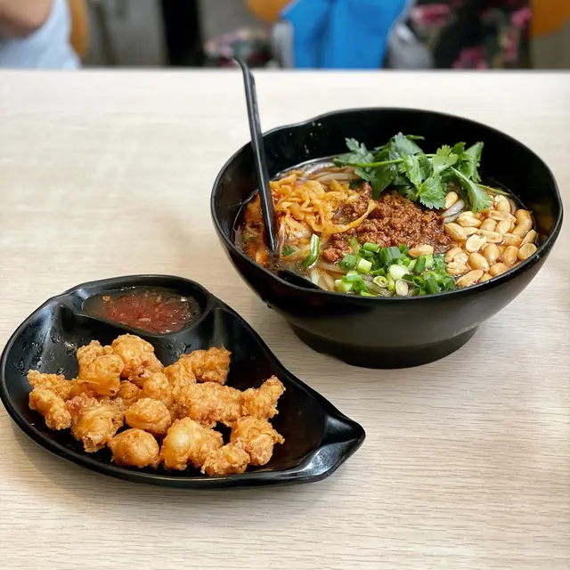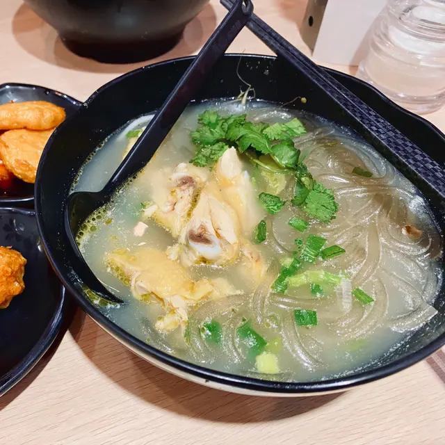 除左麵包同零食,拎住$30到底可以食到啲咩😂😂因為放工後仲要返學,有時真係要極速食啲野就算,咁岩學校附近都有唔少快食嘅選擇🤣今次就講下$30 budget嘅選擇之一😆·1️⃣雞扒芝士豆腐薯粉配炸花枝丸($29)呢個價錢其實係下午茶價錢,不過佢嘅下午茶係去到七點,所以當係晚餐都可以🤪下午茶以外嘅時間都只係$33,仲係全日供應😌·雞扒唔算好大塊,我手掌左右嘅size,本身我唔食豆腐,但見到有芝士咁得意就試下,原來係類似魚蛋中間有啲流心芝士😳😳唔係一般豆腐嘅質地,又幾特別,我當佢係芝士魚蛋🤣薯粉份量都多,口感幾好😙·2️⃣泰式鮮雞湯薯粉配花枝丸($29)除左雞扒芝士豆腐,我之後仲試埋佢呢個泰式鮮雞😋😋雞嘅份量正常 ,有四五件,真係鮮雞件,唔係雞枊,都幾滑😚可能因為係泰式,所以食左少少就突然食到少少辣🤣我接受到的😌·炸花枝丸即叫即炸,熱辣辣,點埋甜酸醬仲好食🤤🤤有三粒,炸得幾彈牙😙呢個餐仲包一包紙包飲品,所以真係好抵😏🤓不過我見佢menu寫住只適用於尖東店,所以唔知其他分店有冇🤔查看更多