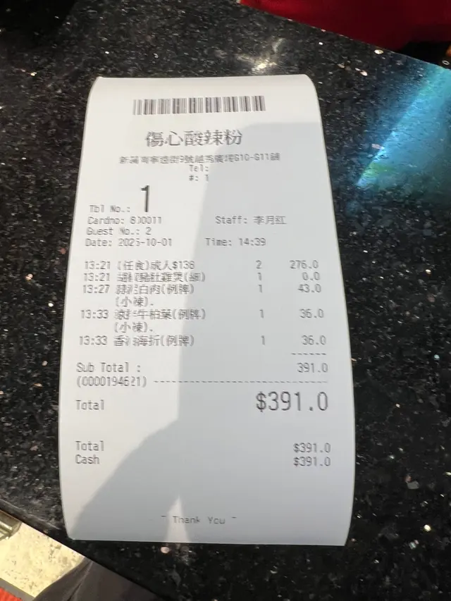 傷心酸辣粉 (越秀廣場)條款及細則: