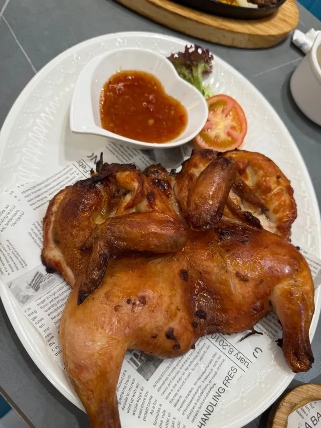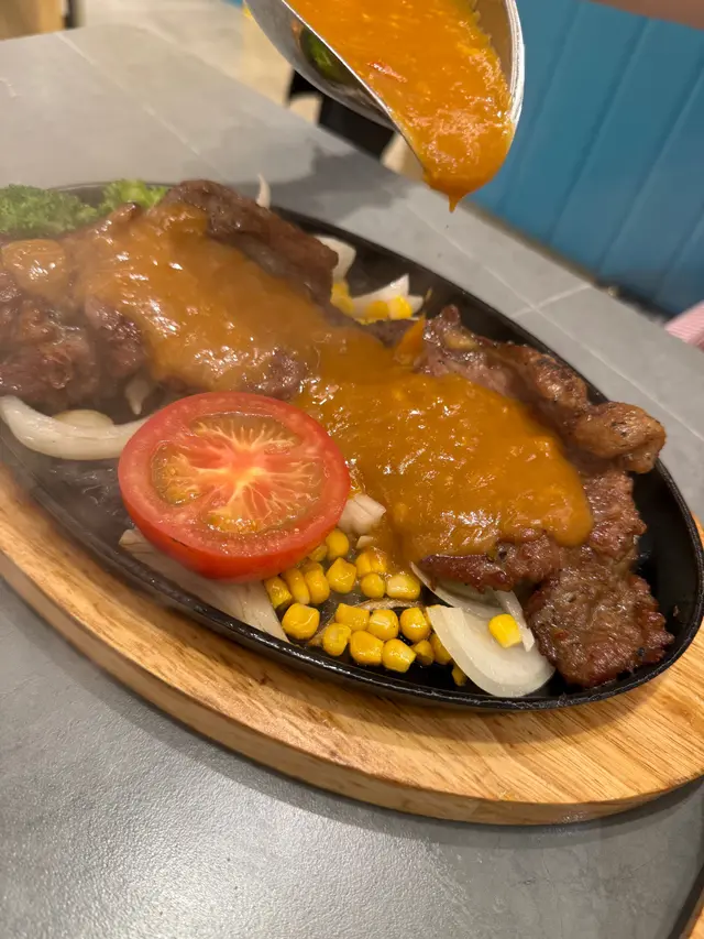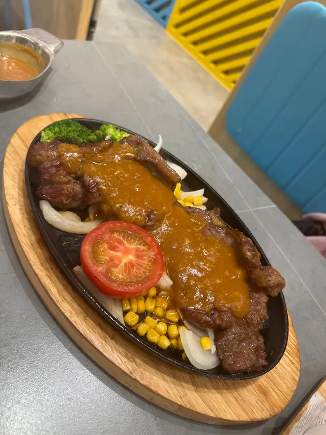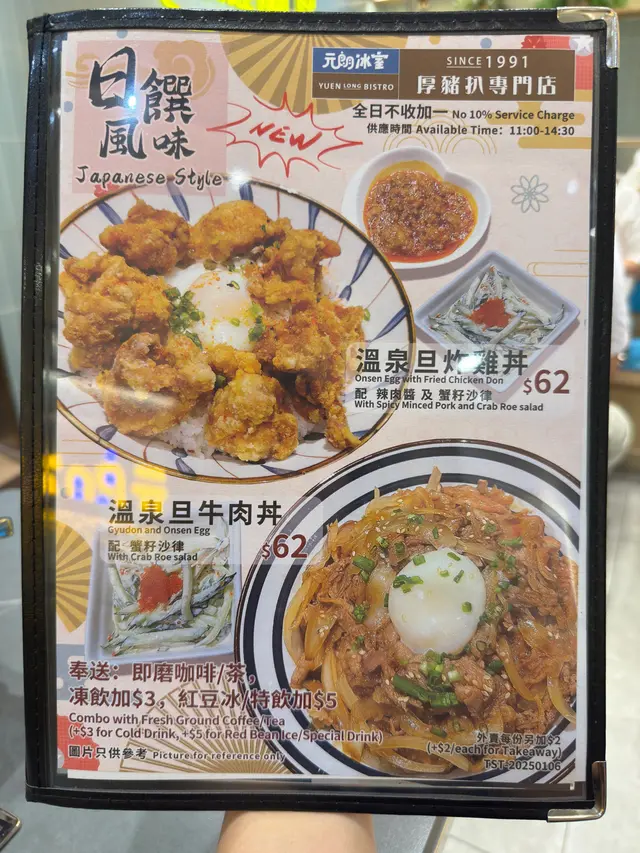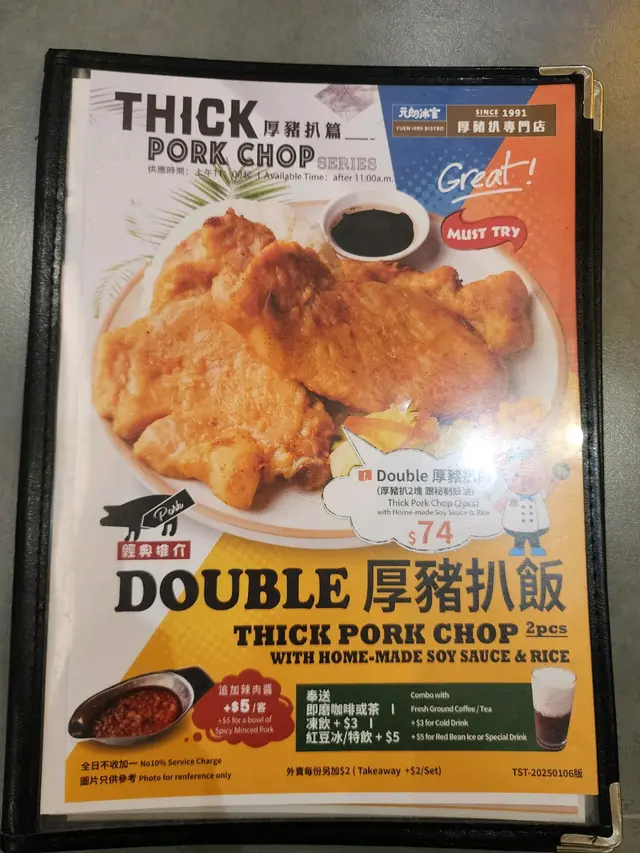 大熱天時35度,帶住小朋友活動完之後,身水身汗,見到附近有元朗冰室,一於入去醫肚。餐廳嘅裝修主要以黃色為主,感覺精神有活力。打開餐牌,有很多不同嘅選擇,由一般茶餐廳嘅食品,到小朋友喜愛嘅菜式都有,正值下午茶時間,我哋一於試多幾款一齊食。咖喱牛肉意粉牛肉嫩滑彈牙,意粉啖啖掛上香濃嘅咖喱汁,咖喱汁唔算辣,大人小朋友都食到。招牌厚豬扒上枱發現塊豬扒size大過我隻手, 唔單止大,還要是厚厚的。入口香脆啖啖肉,滿滿嘅肉汁,香氣四溢。素菜pizza配薯條是日pizza是素菜口味,上碟時小朋友見到已經心心眼😍,我哋一人一塊,食落有驚喜。批底香脆,配上三色椒及菠蘿,香甜爽口,小朋友食唔夠。和風雞肉披薩 小朋友要encore 🍕, 試埋佢嘅和風雞肉披薩。全個pizza有八件,雞肉配上和風醬,加埋脆脆嘅餅底,一人一件好快又食晒。冰室一口西多士一口西多士外脆內軟,配瀑布煉奶及朱古力醬喺面,切好晒一粒粒size剛剛好,小朋友食到舔舔脷,如果多啲朱古力醬仲正。禾味燒BB鴿外觀色澤光亮,散發着脆皮香氣,入口皮薄肉嫩,配上淮鹽,提升乳鴿口感層次。沙嗲牛肉包嫩滑彈牙嘅牛肉,配上香濃嘅沙嗲醬,再放入剛焗好香脆嘅熱狗包內,入口沙嗲醬滿滿的近乎爆出嚟,夾埋熱狗包吃剛剛好,口感大滿足。鹹魚雞粒炒飯炒飯夠乾身,粒粒分明,配上爆香咗嘅鹹魚粒及雞粒,每一啖都有唔同嘅口感,層次分明,一人一碗好快又K.O. 哂照燒汁鰻魚丼小朋友想食鰻魚,煎香嘅鰻魚面上鋪上厚厚嘅鰻魚汁,香滑綿綿,配上海帶、粟米及配菜,大家表示食完飽飽。總括而言,價錢大眾化,性價比高;夏天熱熱,坐得舒適。小朋友最鍾意食佢個比蕯,絕對係厚切豬扒以外嘅另一小驚喜。…查看更多