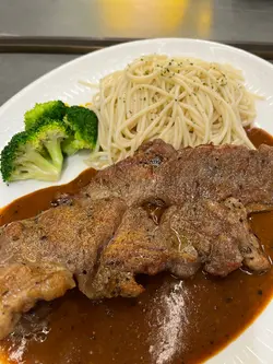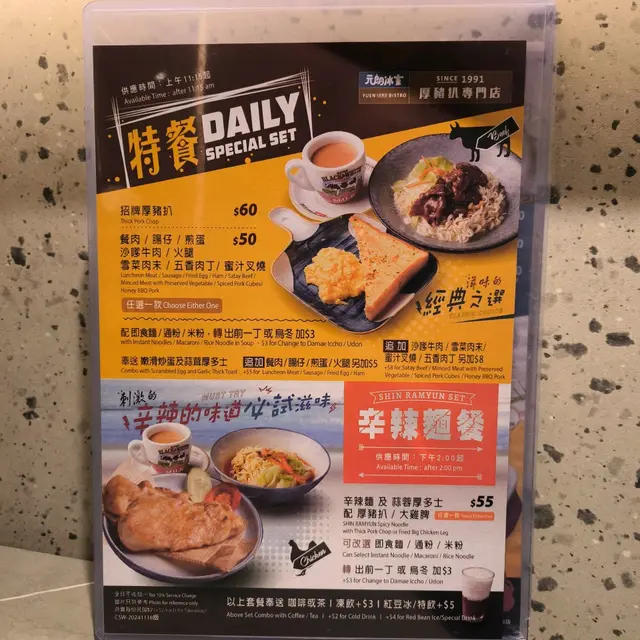 環境座位闊落,卡座軟墊承托力足,坐足兩個鐘都唔會腰酸背痛。最抵讚係**全日免加一**,人均幾十蚊!首先,個**火辣烤雞配焗薯**真係不得了!雞皮烤到脆卜卜,辣醃料滲透晒入肉,食落啖啖肉汁,仲帶住微微香草味。旁邊嘅焗薯外脆內軟,點埋酸奶油,辣中帶滑,完美配搭!跟餐嘅**牛肝菌湯**更加係驚喜,菌香濃郁到呢,飲落順喉暖胃,完全無馬虎。**厚豬扒配咖喱汁飯**係另一個必點!塊豬扒厚切得嚟鬆化唔韌,表面煎到金黃,咬落去仲有肉汁鎖住。日式咖喱汁甜中帶辛,撈飯一流,轉眼就清晒成碟。套餐揀咗**沙嗲牛肉公仔麵**,湯底夠濃,沙嗲香得嚟唔會死鹹,牛肉嫩滑,公仔麵煮得剛好,唔會太淋。呢個價錢有齊飲品同多士,性價比爆燈!最後個**燒鰻魚手打烏冬**,鰻魚燒到焦香,肉質肥美,醬汁甜鹹平衡。手打烏冬煙韌有咬口,湯底清甜,成個組合夠晒和風。…查看更多
