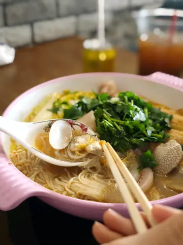 今次我就叫咗兩碗花甲粉再加肥牛、芝士腸、火腿丸等, 肥牛都幾有牛味, 火腿丸喺坊間又比較少有, D 配料同花甲嘅鮮味平衡得啱啱好, 份量仲超大碗🤩飲品方面,我試咗佢哋嘅自家製菊花茶,清熱又解膩!另外, 我仲叫咗杯一公升咁大嘅鴨屎香檸檬茶,超大杯,檸檬嘅酸香同茶底好夾,仲可以解辣🥳…查看更多