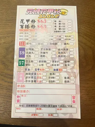 今日路經元朗,見到間隱世小店元朗花甲粉。$60就有大大碗花甲粉,如果細食嘅話兩個人食都得嗰啲餸多到同粉絲差唔多一樣咁多,真係好抵食。間店仲好貼心提供濕紙巾,食完嘢就唔怕搵唔到紙巾抹嘴。今次嗌咗幾樣餸,有幾樣特別深刻。首先係佢個豆卜,索曬佢嘅湯汁咬落去嘅時候,係口爆曬啲濃湯出嚟,超級正。另外佢嘅餐肉全部都係厚切,食落去啖啖肉。叫得花甲粉最出名嘅就梗係去嘅花甲😎, 粒粒花甲都大大粒,好鮮味,浸落個湯度令到個湯底更加出色。另外佢嘅手打檸檬茶真係好特別飲得出真係手打,檸檬亦都非常新鮮。…查看更多
