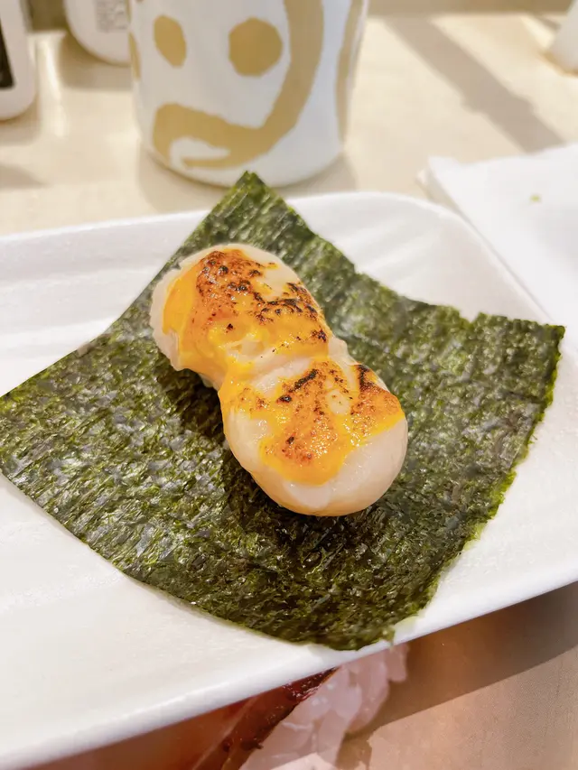 今晚又去左元気寿司食晚餐!珍寶赤海蝦壽司 $12一件:呢款壽司係新野!聲稱係正常嘅一點五倍,不過明顯冇咁大喎,唔抵。赤海蝦刺身 $42:一客五隻連蝦頭。赤蝦大大隻又鮮甜又啖啖肉,蝦頭都好多汁啜,抵食過珍寶赤海蝦壽司。炙燒黑松露帆立貝壽司 $17一件:呢款壽司次次都要食!帆立貝又厚肉又鮮甜,上面加左適量黑松露醬,再炙燒吓,啖啖肉,正!雙重鰻魚流心芝士壽司 $14一件:有兩塊鰻魚上面再加一大舊炙燒過嘅花畑牧場卡門貝爾芝士,好味道。筋子壽司 $10芝士焗日本蠔 $26一隻:芝士蓋又厚又拉絲,食落好好味又鹹鹹哋又酸酸哋咁,好邪惡!入面隻蠔又新鮮又多汁,不過唔見左碎洋蔥粒。温玉子壽喜燒牛肉飯 $58:用個靚靚日式飯盒裝住,一開蓋,就見到入面滿滿嘅肥牛片,同一隻大大嘅温泉蛋,飯量好多,明顯係珍珠米,粒粒都好有咬口,餸壽喜燒汁同蛋汁好味道。肥牛味幾濃。其他配料仲有甜甜嘅洋蔥絲。炸軟殼蟹 $49:得三件,都冇全隻蟹,唔多抵喎查看更多