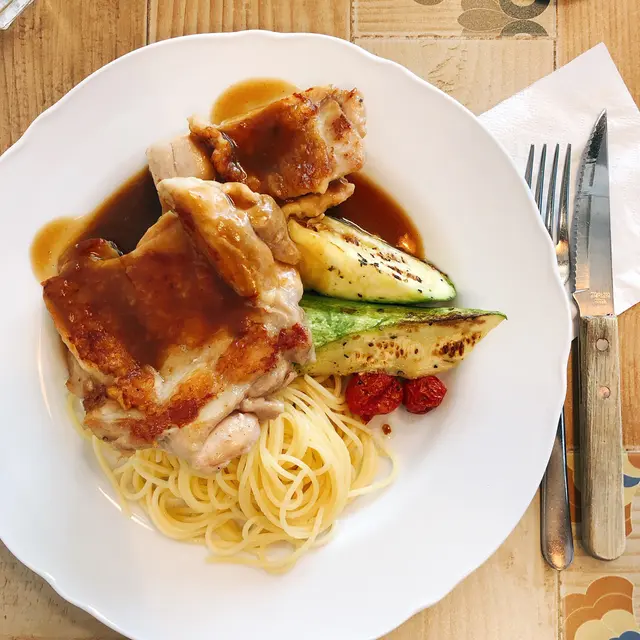 嚟過呢間食店幾次,一定要係午時前到,因為每次都好快客滿。見到門口張貼告示,好似做埋今個月就結業,有啲不捨。焗原塊雞扒配意粉 $82餐湯及飲品 +$10西蘭花打碎整成餐湯,食得岀少少疏菜碎。三塊小小雞扒,香煎入味。連埋意粉,分量對女生嚟講唔少。查看更多