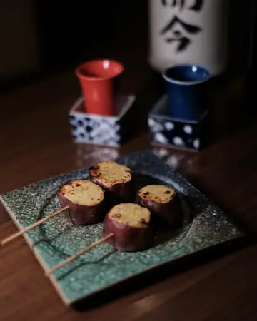 ❣️一口串燒、一啖酒,呢度有各類型嘅日本酒,有專業唎酒師專業推介,我地試左三款清酒,大七箕輪門純米大吟釀較易入口,另外仲有奧能登之白菊x風之森純米大吟釀原創同奧能登之白菊x風之森純米大吟釀合作,女仔都啱飲🍶 ❤️除左串燒正,前菜同自家製甜品都出色🥰 ❣️藁燒鰹魚$88~以稻草和炭火慢慢炙烤出來,效果出色😋❣️半熟蛋伴薯仔沙律$68~薯仔蓉撈左明太子,配流心蛋,日式和風料理幾特別👍❣️慢煮山椒鶏胸肉 $ 88~肉質嫩滑,以山椒醬汁,伴上生洋蔥一齊食,充滿層次感😋 ❣️黑啤爆谷雪糕 $ 48~真係食到有啤酒味同爆谷香😊