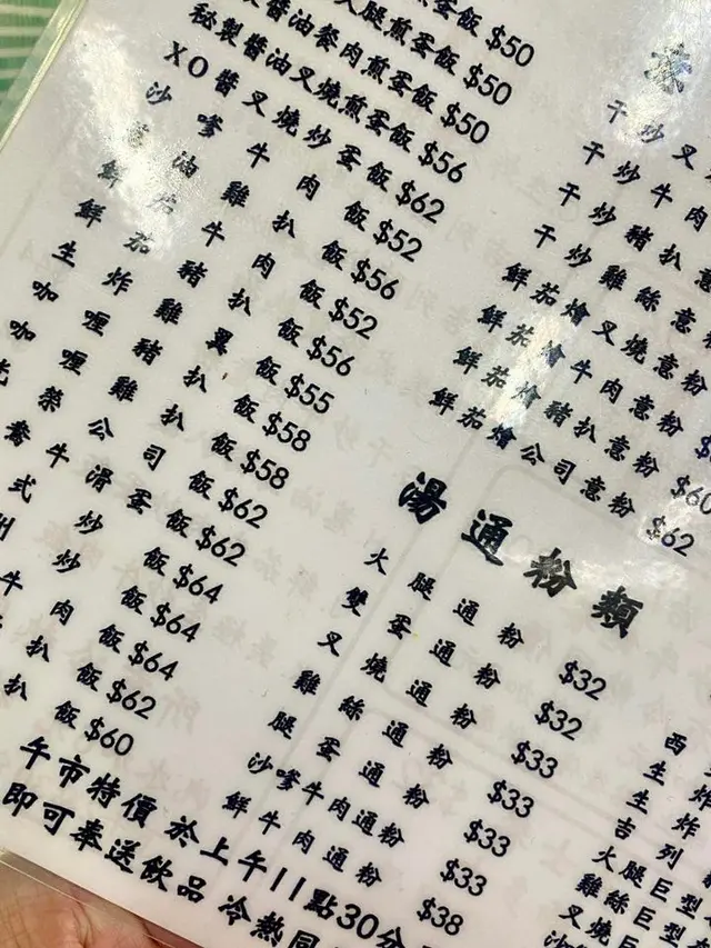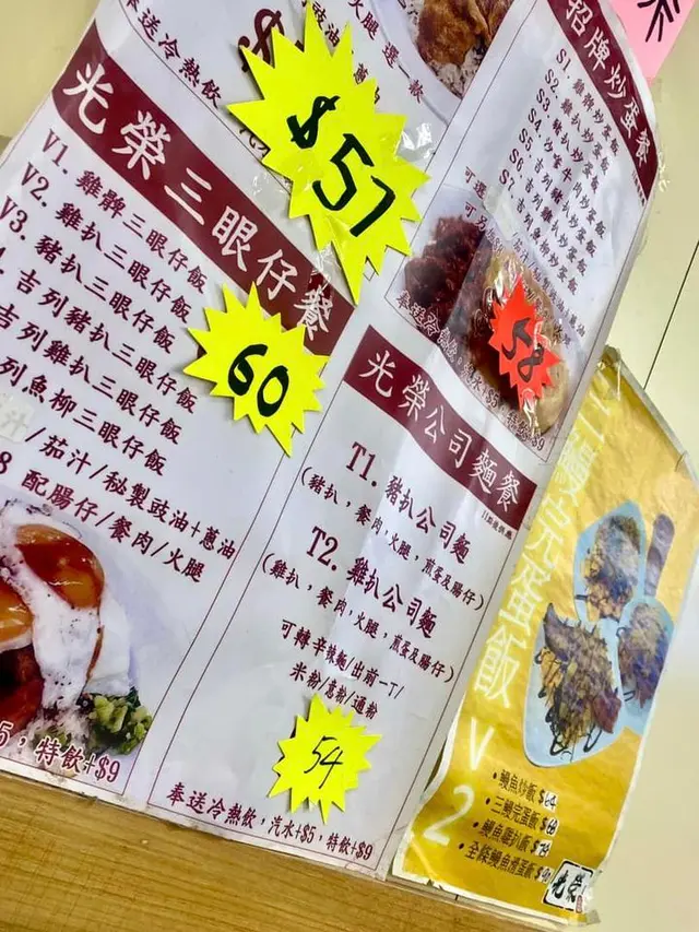 光榮速食一流夠晒快,不過食親都肚痛,由坐低點餐到食完埋單都唔洗15分鐘,食飽又立即開工﹗豉油滑蛋雞扒飯,終於發掘到光榮名物﹗炒滑蛋真心出色,加上自家調製甜豉油,仲有肥美半煎焗厚厚嫩滑多汁靚雞扒,全部撈埋一齊嘆堅係不得了!食到乾乾淨淨,只係白飯略濕要扣點分數。炸雞中翼沙律,這個擺盆非常有創意,各散東西?分道揚鑣?眾叛親離?懷舊港式沙律勁落沙律醬,將薯仔及雜果浸死去﹗瘦瘦翻炸雞翼發育不良瘦猛猛,乾柴迆無肉食,厴味混濁。咖哩汁豬扒意粉,突然想食港式咖哩撈意粉,不幸地狠狠中伏了﹗貌似深色濃郁多汁,估您唔到入口無味既?水汪汪淡茂茂咖哩水,唯有加胡椒粉吧﹗不過反魂乏術、無補於事。無味全熟白烚意粉,加上無味咖哩,都幻想都係咩味道。恩惠地有骨豬扒唔難食,肉質鬆化不過咸。鮮茄汁雞扒意粉,橫掂試完咖哩就順便試埋鮮茄汁雞扒意粉。見有一兩舊鮮番茄角,顏色濃濃深深的茄汁,但入口無味十足番茄水。立即加兩包不香不辣既辣椒油,完全沒有幫助,早知加地捫茄汁啦。雞扒最穩陣,真煎不是翻炸,肥美濕潤彈牙滑溜而醃味道清爽,啖啖肉好舒服。豉油三眼仔火腿炸雞髀飯,再試炸雞髀比多次機會您﹗依舊翻炸乾硬鞋燶無得救。甜豉油火腿太陽蛋撈飯無得輸,白飯依舊過濕要扣分。滑蛋鮮茄牛肉飯,炒滑蛋必食﹗鮮番茄汁水水的不要搏了,勁鬆腍劈劈粉味牛肉都算了吧﹗吉列豬扒,太瘦太乾太硬免強落肚,沒有肉汁乾爭爭,外層又硬又刮嘴。豉油滑蛋叉燒飯,我都估會有蔥架喇﹗早知係咪都講走蔥先,續粒挑出黎好攰呢!普普通通沒什麼特別,茶記叉燒唔夠靚,色香味欠奉。豆卜火腩飯,中規中矩燒肉,部份太肥部份太咸部份適中,撈汁撈多一點飯都還可以,豆卜嚥韌吸汁比燒肉可口。外觀賣相單調乏味不吸引,最可取之處係突快﹗快餐兩分鐘送到面前,暖暖地易入口食得更快﹗全條鰻魚滑蛋飯,膠感十足的即食叮叮鰻魚﹗薄衣衣乾爭爭用匙羹都吉唔穿鋸唔開,夾起大大力咬再用力扯終於可將其分解。深啡色味道甜笠笠帶點魚腥味,叮到燶燶的。全熟炒蛋不是滑蛋,差一丁點就過晒火變乾乾紙皮,炒蛋比鰻魚可口,撈飯還是滿意。揚州炒飯,賣相異常地嚇人﹗無蝦仔既?青豆都無粒?火腿叉燒炒飯,幸好夠鑊氣無炒到一舊舊夠乾爽,有肉味有蛋香。梅菜扣肉飯,心血來潮試試,外購翻熱貨色,沒甚樣擺盤賣相,極速一分鐘到站﹗極大量甜梅菜,五花腩薄切,肥膏沒有甘香溶化的感覺,瘦肉沒有香口鬆化的感覺,食落油膩不開胃。蔥油鴛鴦扒飯,甜豉油最美味、蔥花太大粒太腥食唔到﹗厚切有骨豬扒、肥美雞扒香煎有誠意,不是求其掉落炸爐由得自生自滅,不幸地白飯有點爛有點過濕啊。…查看更多