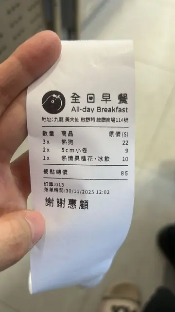 全日早餐All day breakfast創意早餐九龍鑽石山、昔曰變化至今、而啟鑽苑鄰近地鐵、附設大型商場、美輪美奐、除了連鎖食店、仲有小店「全日早餐」😋😋😋熱狗停不鳥✨經典多肉·熱狗手掌般大熱狗包🌭、中間放置美味脆口香腸、創意淋上肉粒、增添口感和觀感、吸引眼球👀、香腸+肉粒多汁與香氣、搭配柔軟的熱狗包、咬一口、充滿驚喜、令人難以忘懷!✨和風牛·熱狗嫩滑牛肉與獨特日式調味結合、增添香氣、口感豐富、層次分明、香氣四溢、讓人享受東方與西方的完美融合!✨煙肉烘·熱狗香脆的煙肉、獨特的煙熏風味、搭配軟嫩的熱狗包、口感豐富、咸香與肉汁交織、令人欲罷不能。✨蜜桃吉士小卷蛋日本直送蜜桃吉士卷蛋口感滑嫩、蜜桃的甜香融入蛋卷中、帶來清新與柔和的風味、每一口都如同品嚐夏日的陽光、令人陶醉!✨抹茶小卷蛋日本直送抹茶小蛋捲香氣四溢、抹茶的清香與蛋捲的鬆軟完美結合、口感細膩、回味悠長、每一口都散發著淡淡的苦甜、猶如品味日本的茶道文化!✨熱情果桂花冰飲融合了熱情果的酸甜與桂花的芳香、茶湯清新柔和、口感順滑、令人神清氣爽、彷彿置身於花香四溢的果園中!全日早餐All day breakfast鑽石山彩虹道235號啟鑽商場1樓114號舖港鐵鑽石山站A2、步行約2分鐘…查看更多