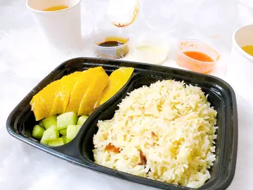 由買餐去攞餐差唔多要一個鐘頭,熱辣辣油飯配油令令溫泉雞終於都上枱啦!急不及待食一啖飯,入口感覺啲飯濕左少少 但香味十足!