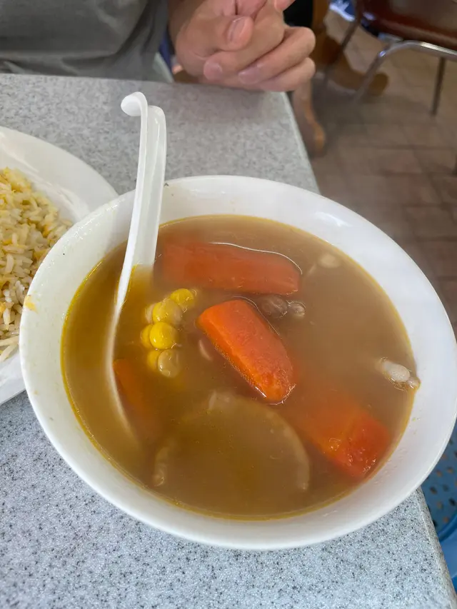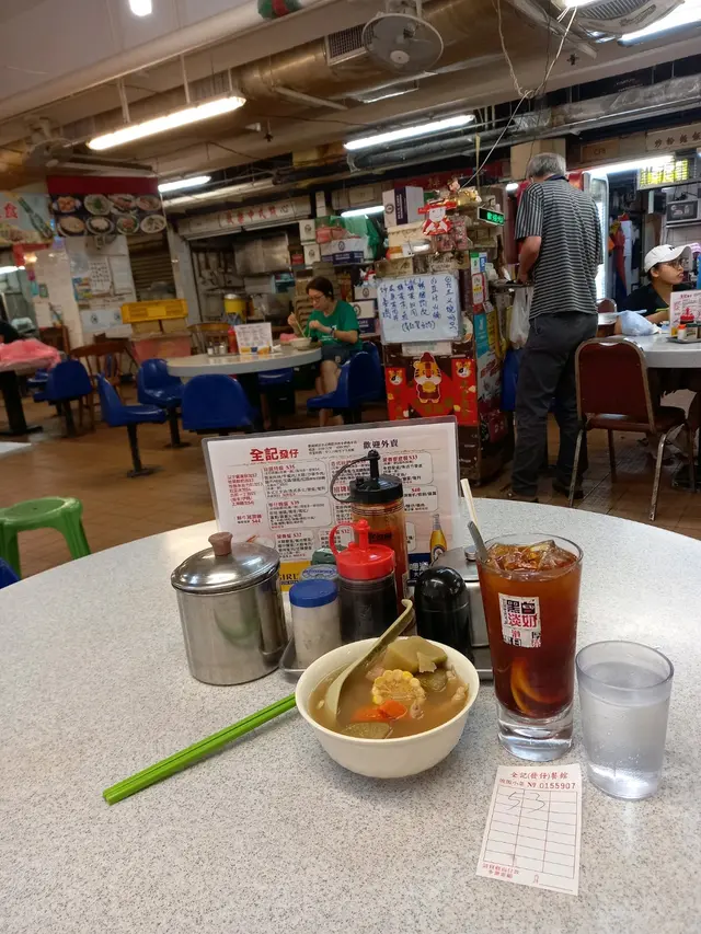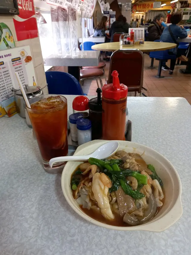 買完餸滿頭大汗見到出面千個太陽🌞所以諗都路諗係番同一個街市樓上既熟食中心咬個lunch!一入門口就係呢間餐廳見到餐牌好多選擇就坐低左,侍應服務態度很好先遞上兩杯熱茶再介紹今日午餐推介!之後我地點左一個五香肉丁炒銀針粉+凍朱古力同豬扒炒飯+凍鴛鴦,再加多個餐湯$5。夾埋都係$105 。由於即點即煮既關係而且lunch time 多客,所以都等了大約十多分鐘先有得食,幸好有冷氣回回氣!五香肉丁銀針粉味道不錯,而且很多地少有炒銀針粉!所以值得一試!而豬扒炒飯豬扒煎炸得剛好,可惜炒飯味道淡淡。餐湯係紅蘿蔔粟米豬骨湯,仲有隻雞腳!足料同夠火喉!查看更多