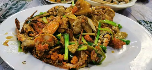 我們在大成街市烈正買海鮮後,去左大排檔加工,熟食市場又有冷氣,可以好舒服等食。我哋買左8款海鮮,清蒸東風螺、薑蔥炒辣蟹、椒鹽瀨尿蝦、蒜蓉粉絲蒸扇貝、豉汁蒸東星班、豉汁蒸鮑魚、韮王炒鮮魷、蒜蓉粉絲蒸帶子。加多個腐乳通菜,滿足的一餐。查看更多