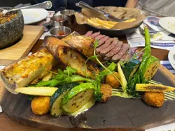 Cp值高$498既2人晚餐,無論同朋友子或者男友子去,都真心十分推薦比大家🫶🏻餐湯係南瓜湯,都好重南瓜味,唔會過淡🎃前菜和牛薄切配青醬同沙律菜,青醬帶微辣,和肉肉質嫩口,我好欣賞依個前菜,因為好適合唔鐘意沙律醬既朋友子食👻黑松路和牛粒珍珠米十分重黑松路味,炒得乾身加上珍珠米口感煙韌,配埋和牛粒令成個香味提升👍🏻牛骨髓配法包+西冷依個實在太震撼我眼球👀份量多多,牛骨髓比想像中唔太油膩,配外脆內軟既法包再配一啖黑松路薯蓉,好滿足🥴西冷就3成熟,呈粉嫩肉質嫩口,有埋莎莎醬、海鹽同青色既芥末(😂?)沾黎食,不過本人愛沾海鹽,更吊到牛既香味,仲有西蘭花苗、粟米仔、瓜,又有菜又有肉😆Tiramisu 甜品係大大杯既tiramisu ,口感比較實在,都唔錯既餐飲水果茶,味道都好清新,完全解到食物既膩,仲有生果粒可以食👍🏻