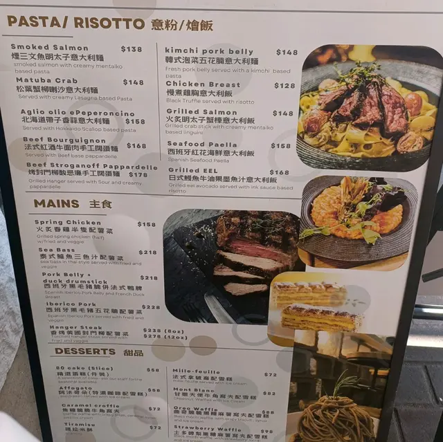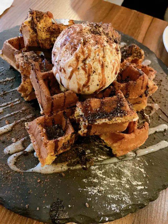 同朋友約食飯,原來撞正做緊韓星嘅應援主題,所以現場有好多fans😂舖頭氣氛唔錯,適合同朋友慢慢吹水不過座位安排有待改善,喺OpenRice book咗位,但係去到現場話要等多兩張,諗住都好快,結果等咗半個鐘😥主食唔錯,叫咗黑松露雞胸意大利飯,因為見到張相好靚所以試吓,雞胸肉非常有驚喜!份量多,而且肉質唔嚡,好好食😋飲品嗌咗抹茶鮮奶,非常貼心地可以嗌走甜😚,抺茶味道濃郁,都幾好飲甜品係黑糖麻糬窩夫同Tiramisu ,窩夫幾好食,入面有啲麻糬,甜甜地,又軟綿綿,令口感更豐富,配埋雪糕好夾👍🏻但tiramisu 就唔推薦~好膩🥹好似食緊一坨cream多過食緊Tiramisu,味道都係死甜,唔算好好食🫣