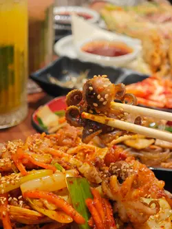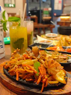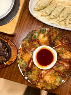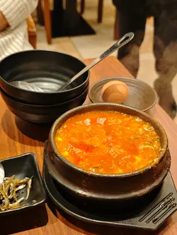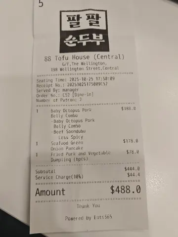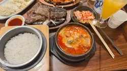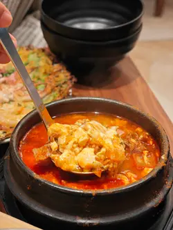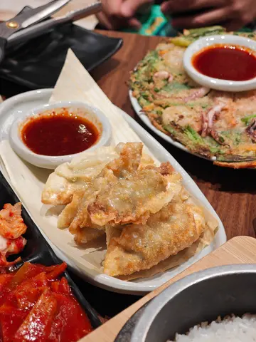 中環感覺唔多韓國餐廳,見呢間網上評價唔錯又係新開嘅就即管去試一試。餐廳keep住都幾多人流,環境乾淨,重點坐得舒服。小食前菜份量都幾多,唔止有泡菜仲有魚糕同粉絲。小章魚五花肉套餐 $188套餐仲有跟一鍋米飯,味道有少少偏甜無想像中咁辣。小章魚幾多粒口感彈牙,五花肉唔少不過就偏油身D,不過用黎配飯食係OK牛肉嫩豆腐鍋呢個套餐幾抵食,一個炒熱鍋再加一個湯鍋。叫左呢款牛肉嫩豆腐鍋上檯時仲係熱到勁滾,有一隻生雞蛋附送可以直接打埋落去一陣就熟晒。個鍋我揀左少辣,食起上黎岩岩好。牛肉片唔少,豆腐超嫩,整體成個味道配飯撈埋一齊食勁正 海鮮蒽煎餅 $178唔係厚身個種煎餅,所以口感比較脆。海鮮都幾多,又蝦又魷魚。蔥量都唔少,食起上黎幾夠香。另外有個酸酸地嘅辣汁,沾沾黎食香好多又無咁油膩Fried Pork and Vegetable Dumpling (6pcs) $78煎炸餃子個外皮好脆,算係幾大隻。內餡係豬肉同大量嘅蔬菜,幾香唔錯…查看更多