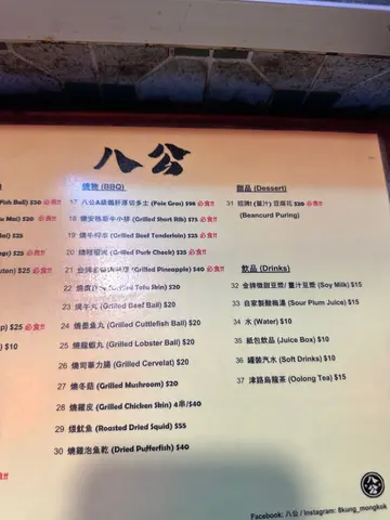 八公 (旺角) 網址: https://s.openrice.com/QrbS0aDa900 地址: 香港旺角奶路臣街6A-6E號地舖 電話: +852 94491577