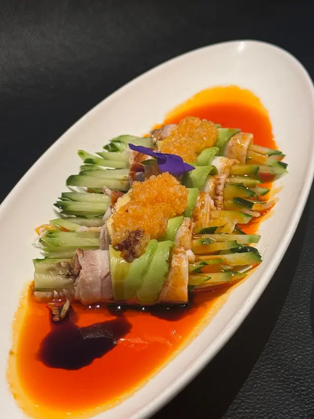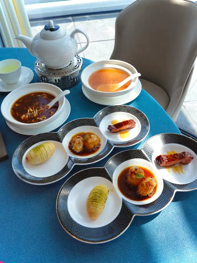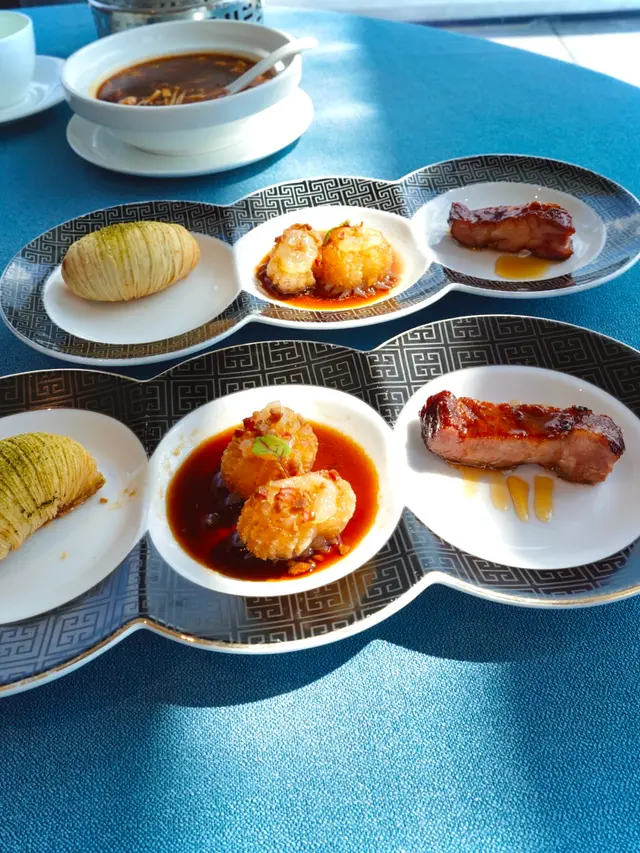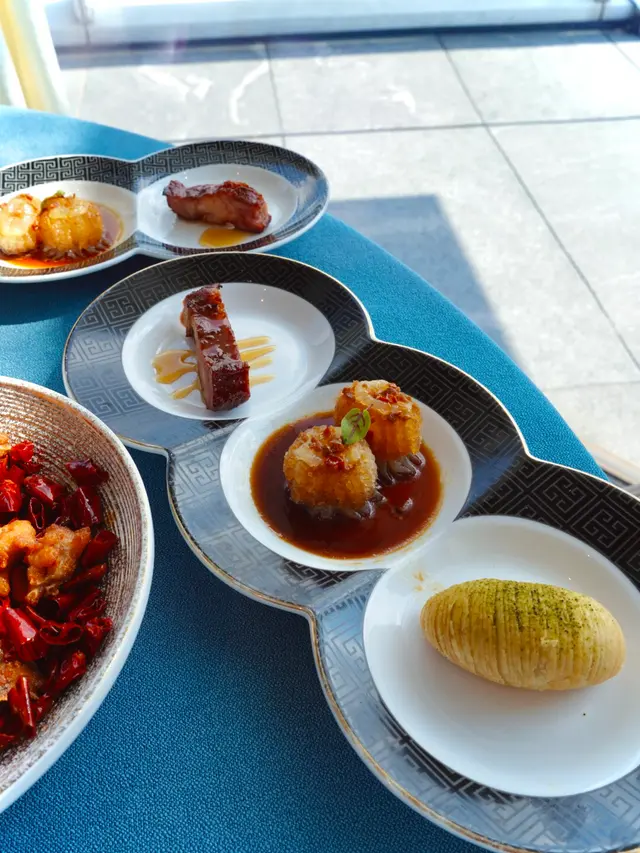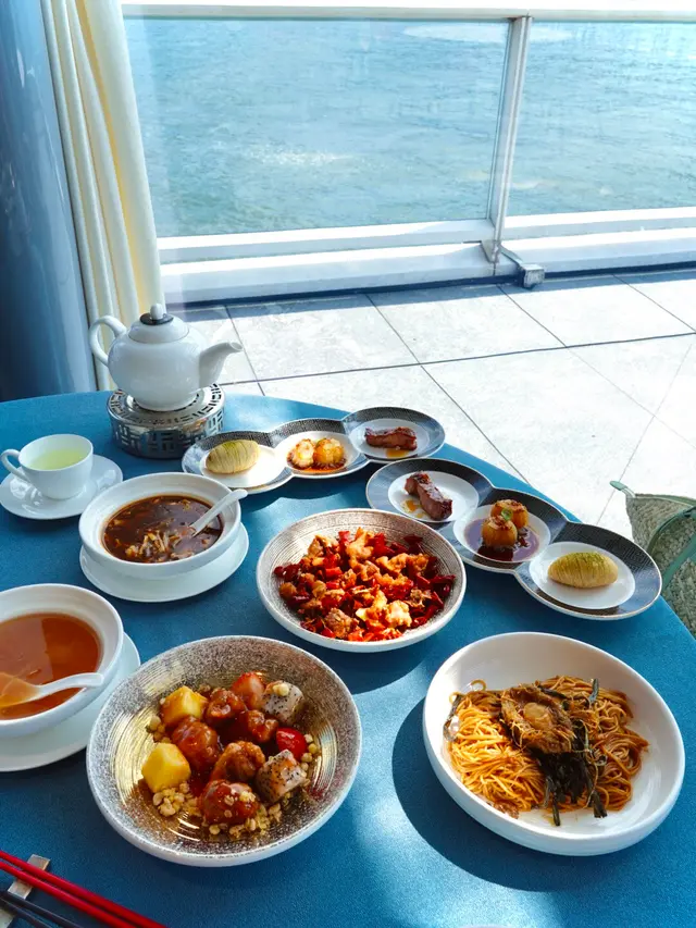 八十里坐落海邊,餐廳環境好開闊,一入去就望到成片大海景,落地玻璃外藍天白雲,食飯氣氛即刻放鬆晒,感覺好舒服。黑蒜慢燉牛肉燉得軟入味,牛腱肉唔鞋口,黑蒜香氣夠但唔搶味,超值得叫。爆汁和牛燒餅外皮烤得脆,一咬落真係有汁滲出,牛肉肥瘦均勻,肉味夠香幾好食。龍蝦湯泡飯湯底鮮甜,有龍蝦殼熬出嚟嘅香味,飯粒吸晒湯,唔會太淋,龍蝦肉份量OK,飲湯食飯都幾滿足。海苔鮮蝦春卷炸得乾爽唔油膩,海苔香明顯,蝦肉彈牙,蘸少少辣醬夠開胃。八十里除咗海景加分,菜式全部都有顏值有水準,約人或者想食得舒服啲都好適合。…查看更多