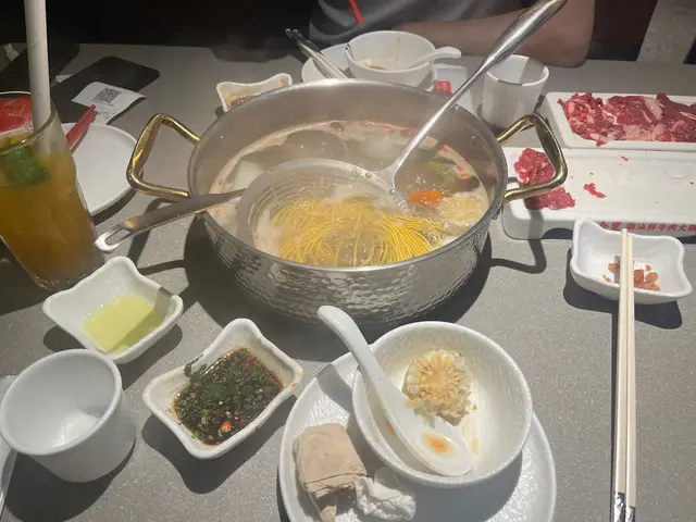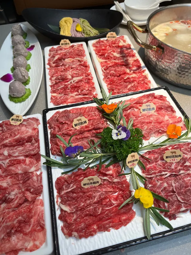 主打即日屠宰、每日新鮮配送嘅牛肉,店內更設有明檔,師傅即切即上香港分店採用的牛肉 來至香港五豐行鮮牛肉供應絕對信心 嘅新鮮,絕對係食肉獸必試之選!😍🌟原味牛骨湯底(大鍋) 牛骨湯底熬得夠哂功夫,一上枱已經聞到濃濃牛香,飲落清甜唔油膩,涮牛肉之前一定要飲一碗原湯,暖胃又鮮甜!🌟鮮切肥牛+鮮切吊龍肉+爽口胸口勝+鲜切牛舌+鮮肉四寶拼盤食肉獸我哋真係叫左好多肉款牛切得薄身,輕輕一涮就食得~吸盡湯底精華,牛味濃郁而且雪花分佈均勻,油脂甘香但完全唔膩口~真係一試難忘🌟手打牛丸雙拼 彈牙又多汁,一咬開肉汁即刻湧出,真材實料嘅手打質感🌟乳山活生蠔鮮甜肥美生蠔 一啲腥味都冇🌟鮮活九節蝦 蝦肉新鮮爽彈,鮮甜味突出,尤其係蝦頭嘅膏香濃郁,鍾意食蝦嘅朋友一定要試~🌟娃娃菜+果蔬三色麵健康之選 一定要食的菜同麵作火鍋終結🌟潮汕殼桃粿拼盤 傳統潮汕點心,外皮軟糯,內餡香甜而不膩🌟金桔百香(凍) + 鴨屎香檸檬茶(凍) 酸酸甜甜非常解膩,尤其食完火鍋飲一啖,即刻清爽哂!…查看更多