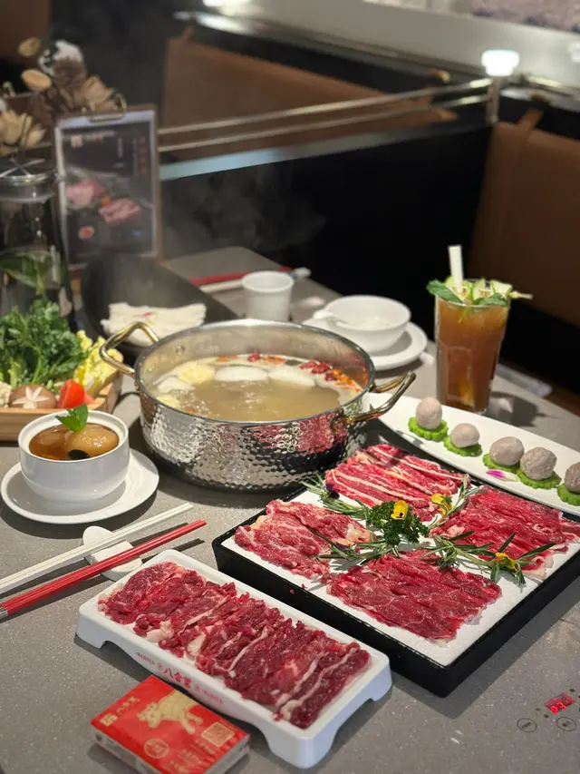 作為火鍋控,一早聽聞沙田開咗潮汕神級牛肉火鍋「八合里」,等到今日先有機會試,真係要講句——點解唔早啲嚟啊!✈️ 原來唔使飛潮汕,香港都食到咁地道嘅鮮牛肉火鍋,真心相見恨晚!一入門口最吸睛一定係個「鮮牛肉明檔」,師傅手起刀落即場切牛肉,刀功乾淨利落,每塊厚薄均勻。最安心係選用香港五豐行鮮牛,即日屠宰日日送,真材實料,陣陣牛鮮味撲鼻,未食已經流口水!🤤我哋叫咗「原味牛骨湯底」,清淡得嚟牛味香濃,完美帶出牛肉鮮味,絕對唔會搶戲。重頭戲係「至尊鮮肉四寶拼盤」同「鮮切肥牛」!上枱時朋友笑問:「聽講呢度啲牛肉新鮮到倒轉個碟都唔跌?」我哋真係試下——結果真係貼實個碟,一啲都唔跌!新鮮程度滿分!💯潮汕火鍋最緊要涮嘅時間,呢度牛肉薄切,師傅建議涮10秒左右就食得。果然,短短十秒牛肉變色即刻撈起,入口嫩滑到難以置信,牛味濃到爆燈,完全冇雪藏味,得純粹嘅鮮甜!另外「手牛丸雙拼」彈牙爆汁、「潮汕四色水晶粿」外皮Q軟餡料正宗、「果疏三色麵」顏色靚又健康。最後飲杯「爆打鴨屎香檸檬茶」酸甜解膩,再嚟個「潤肺小吊梨」滋潤收尾,完美!🍐總括而言,八合里真係名不虛傳!由牛肉新鮮度、湯底純正到配菜製作,樣樣都體現到潮汕火鍋精髓。雖然遲咗嚟試,但呢份鮮味絕對值得等待。以後想食正宗潮汕鮮牛肉火鍋,終於唔使心掛掛北上,香港都滿足到啦!👏…查看更多