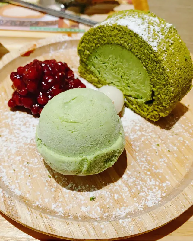 抹茶紅豆白玉卷蛋糕配抹茶雪糕