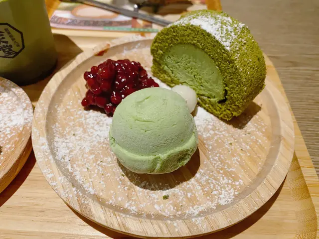 抺茶紅豆白玉卷蛋蛋糕配雪糕球 $58抹茶卷蛋🍵🍰蛋糕夠濕潤抺茶cream雪得夠凍好似雪糕咁🍨好重抺茶味唔甜回甘🤤係大人口味既抺茶卷蛋我超愛😻抺茶雪糕🍧唔易溶奶既比例較少🍼不過抺茶味唔夠突出🍵白玉煙韌🍡紅豆綿密、甜左少少🫘焙茶卷蛋糕 $38焙茶香氣欠奉❌抺茶卷蛋較出色抺茶芭菲 $78賣相吸引🤩打卡一流📸用料豐富由上而下有抺茶雪糕🍵🍧、蕨餅、紅豆🫘、穀物忌廉、芝士蛋糕🍰同抺茶寒天蕨餅-沾滿抺茶粉、口感軟糯煙韌🥰芝士蛋糕-壓碎既、奶香四溢🍼抺茶寒天-抺茶味突出、爽彈味道、口感豐富一個芭菲滿足曬所有願望😇凍抺茶紅豆拿鐵 $42抹茶拿鐵超正🍵口感順滑抺茶味濃郁💯餘韻帶少許回甘飲完十分解渴會encore💚查看更多