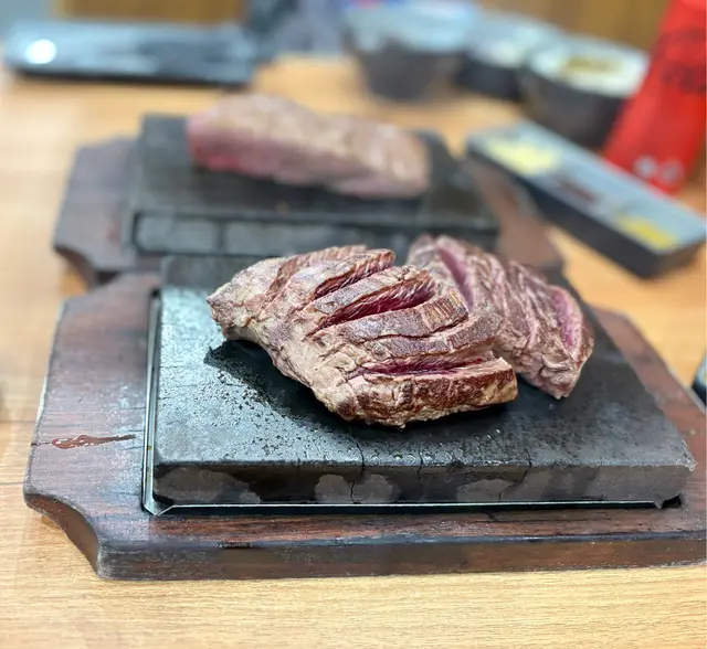工廠大廈,觀塘揾食。平時會去放題食LV2_3 以上才有封門柳的燒肉自由。友人介紹,不用放題的飽腹感都可以食封門柳。日式傳統點餐,先比錢再入座。選擇扒要決定快啲,後面有人排隊,🤣由於被佢封面的封門柳吸引。我放棄平時的牛柳。試一試啦,又幾好,可以封門柳的口味,軟嫩,牛味极其濃郁,口感软嫩中带有嚼劲、肉香持久。有韌性同彈牙。鐘意食蒜的可以將蒜擺上去熱石一起燒。美中不足可惜人太多,我哋收工時間過來,無咩位,坐的好逼。扒送上來手忙腳亂趁佢熱系咁切。。。幾個人圍住夾配菜,🤣好難睇。…查看更多