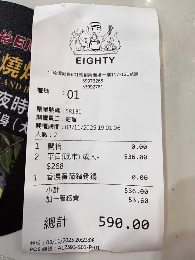 八拾台式火鍋燒烤放題 (旺角) 網上訂座享低至9折優惠兼賺Rice Dollars 網址: https://s.openrice.com/QrbS0YIiF00 地址: 香港旺角彌敦道601號創興廣場1樓117-121號舖 電話: +852 39973268