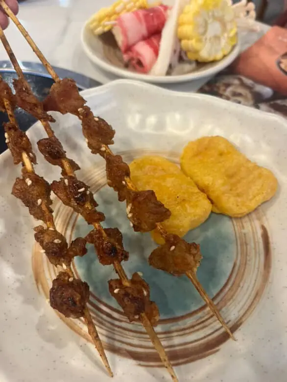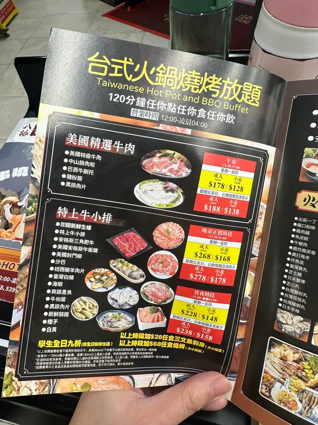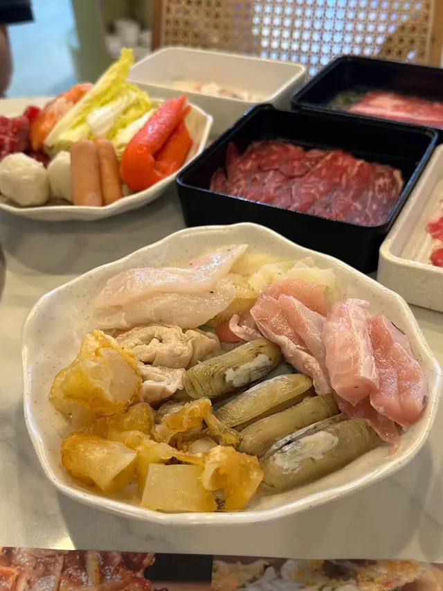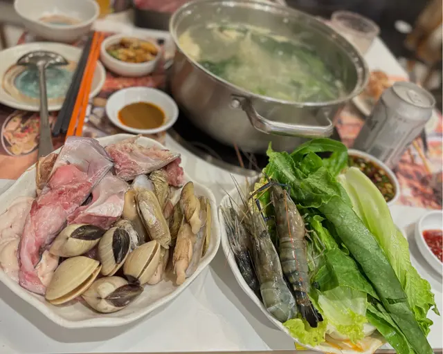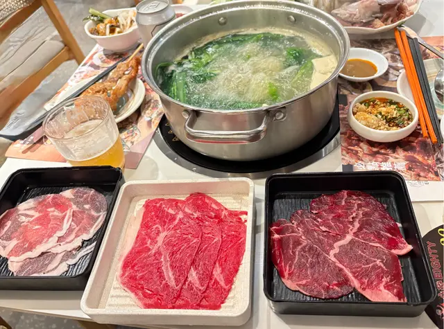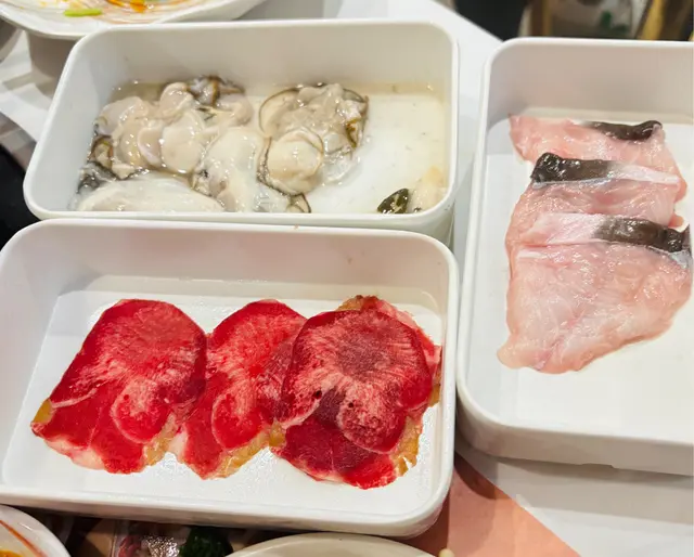 簡單舒適台式燒烤火鍋放題今晚試試台式火鍋,餐廳裝潢風格簡約,色調以木質元素與暖色燈光為主,簡單舒適,不會侷促。地方雖然不是很大,但可分為串燒吧、自助火鍋食材區、飲品區等。冷盤中華沙律清新爽口;味付螺肉嚼勁十足;韓式泡菜酸辣開胃,口感爽脆;涼拌魚皮滑嫩順口且不帶辣味。僅是冷盤已令人倍感滿足!串燒有多款串燒,例如台灣腸、牛丸、雞翼、麵筋、金菇牛肉卷等,味道亦相當不俗。火鍋食物特級牛肉片、安格斯牛板腱、安格斯三角肥牛、紐西蘭羊肉及豚肉等,各款肉類皆色澤鮮亮、質地彈嫩。生蠔與台灣鱔片亦鮮美甘甜,十分新鮮,無論是牛肩胛或牛小排,均能吸收湯底精華,肉質鮮嫩多汁。牛脷托口感軟滑,牛肉香氣濃郁。自助區食物種類繁多,海鮮有鮮蝦、生蠔、魷魚粒、蟶子及貝類等。其中生蠔每日現開,非常鮮甜滋味。蔬菜區有萵筍、筍絲及各式菇類,全部都十分新鮮。台灣丸類必嘗!貢丸、墨魚丸與牛丸皆口感彈牙。自助區域冷藏櫃內備有多款汽水、茶飲及啤酒選擇。前菜區供應涼拌螺肉、泡菜、麻辣小龍蝦、爽脆魚皮、涼拌青瓜、台灣香腸、酥炸小酥肉及咖喱角等。麻辣小龍蝦肉質爽彈;川式涼拌豬耳兼具滑嫩與爽脆,酥炸小蘇肉,脆炸咖喱角也相當入面。還有新鮮水果、甜品豆腐花及雪條等,款式繁多,真的令我們吃個飽!…查看更多