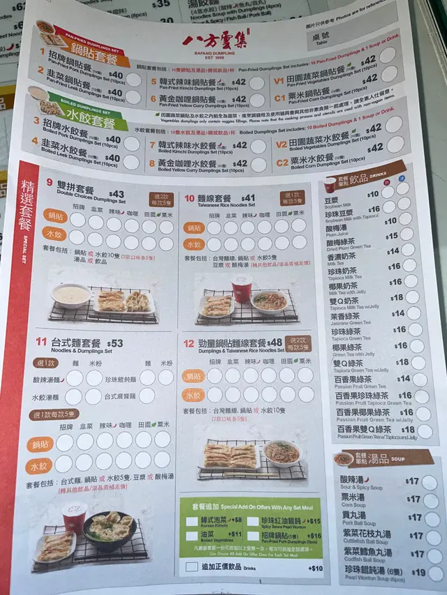 🈺空間稍窄,旺時略擠,但服務快捷,店員態度友善,氣氛輕鬆。😊🥟 咖喱鍋貼 香辣惹味咖喱鍋貼賣相金黃,底層煎至微脆,內餡以豬肉和咖喱調味,入口香辣濃郁,咖喱味溫和不嗆,肉汁豐富。🥟皮薄適中,咬下外脆內軟,份量充足,適合分享。惟油分略重,建議搭配清茶解膩。😋🍜 台灣麵線|地道風味台灣麵線湯汁濃稠,勾芡恰到好處,配以大腸、芫荽和酸菜,味道正宗。麵線幼滑,入口順口,大腸軟嫩無腥,鮮味突出。😍套餐含5隻鍋貼及飲品,性價比高,惟份量稍小,食量大者或需加點。🥛 豆漿|清甜順口豆漿新鮮現磨,甜度適中,入口清爽不黏喉,完美搭配小吃。🥤質素穩定,份量大杯,性價比不俗。🍵 酸梅湯面|失色之作酸梅湯面湯底偏稀,酸梅味淡薄,未能突顯應有酸甜風味,令人失望。😕麵線質感尚可,但湯底唔夠味,與其他菜式相比遜色,建議改試其他湯底如麻辣或肉羹。🏙️ 環境與性價比餐廳位於佐敦核心,地點便利,適合掃街一族。📍人均約HK$40-80,咖喱鍋貼與台灣麵線表現出色,性價比高,惟酸梅湯面需改善。八方雲集以地道台式小吃與親民價格,帶來輕鬆美食體驗,值得一試!🌟