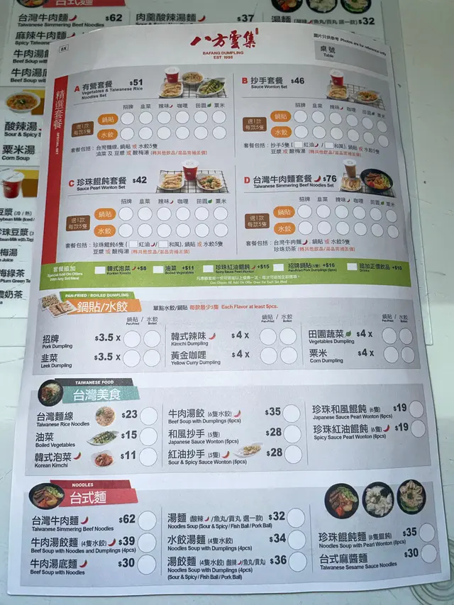 今日試咗八方雲集經典組合,$46就享受到地道台灣風味,性價比唔錯!🥟 招牌水餃(10粒)▪️ 外皮:厚度適中,咬落煙韌有麵香▪️ 內餡:豬肉高麗菜比例完美,肉汁豐盈🌿 韭菜水餃(10粒)▪️ 韭菜香氣濃而不嗆,與豬肉餡融合度高▪️ 建議點少許辣豆瓣醬,提升層次