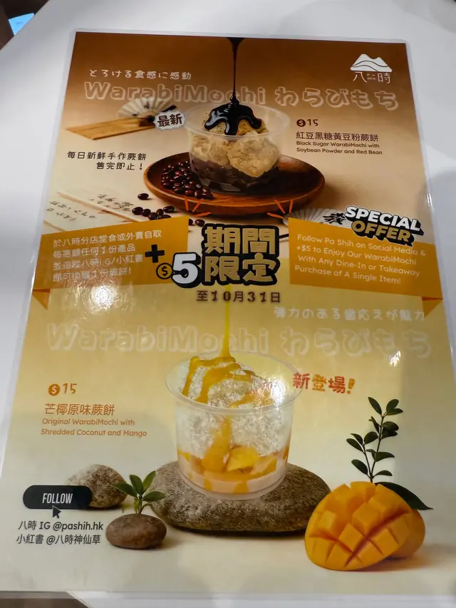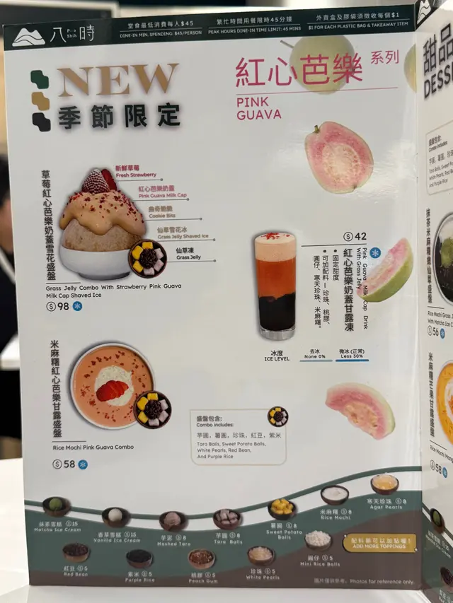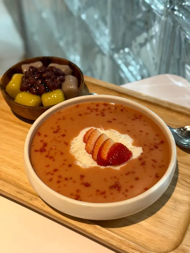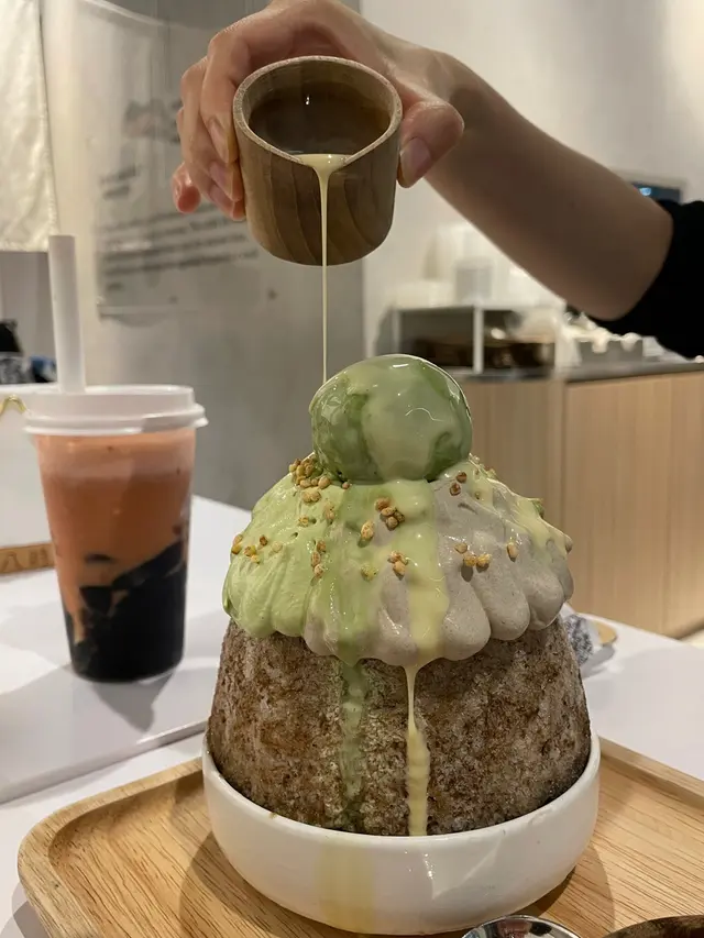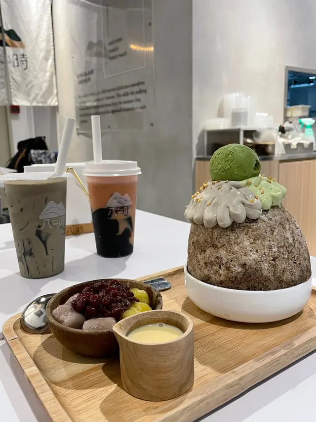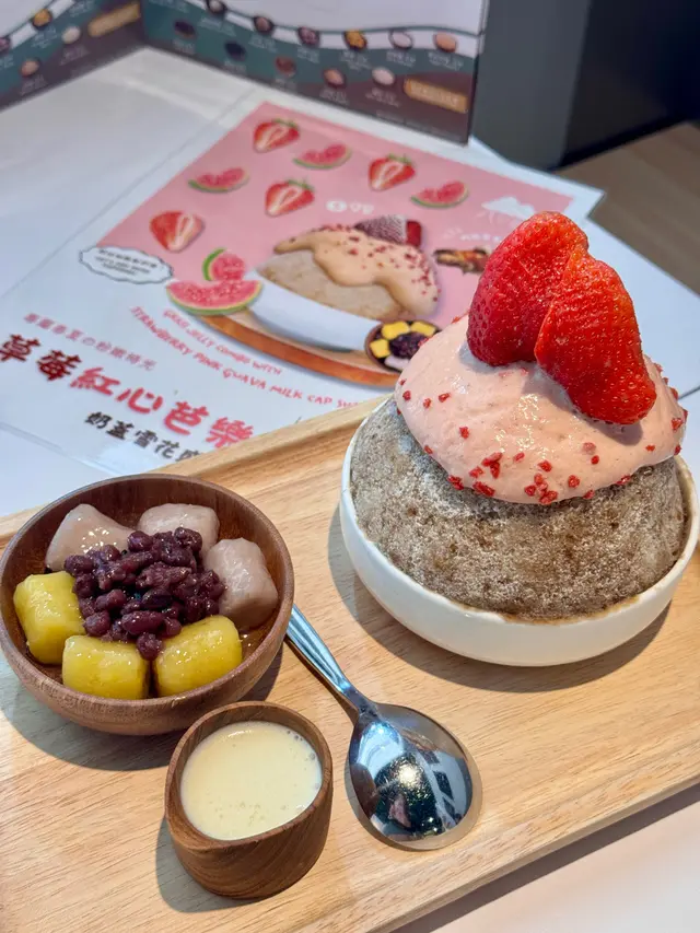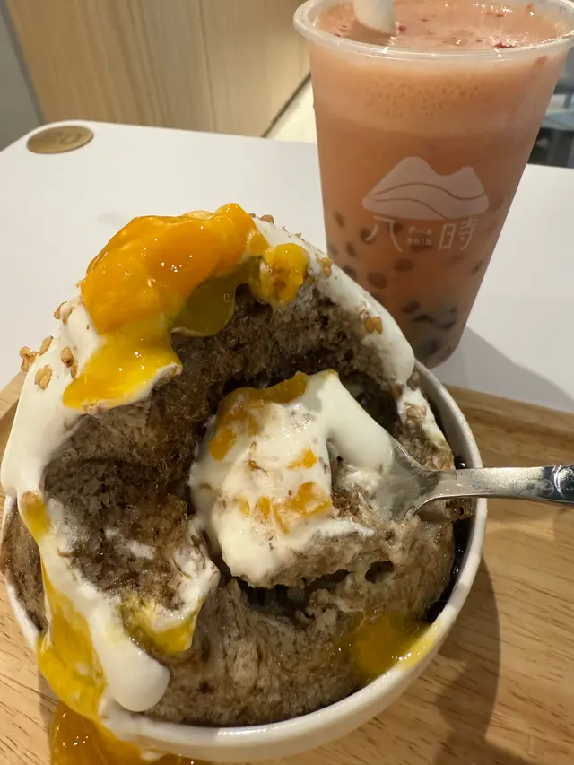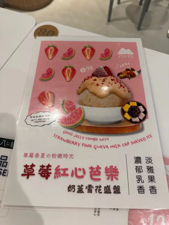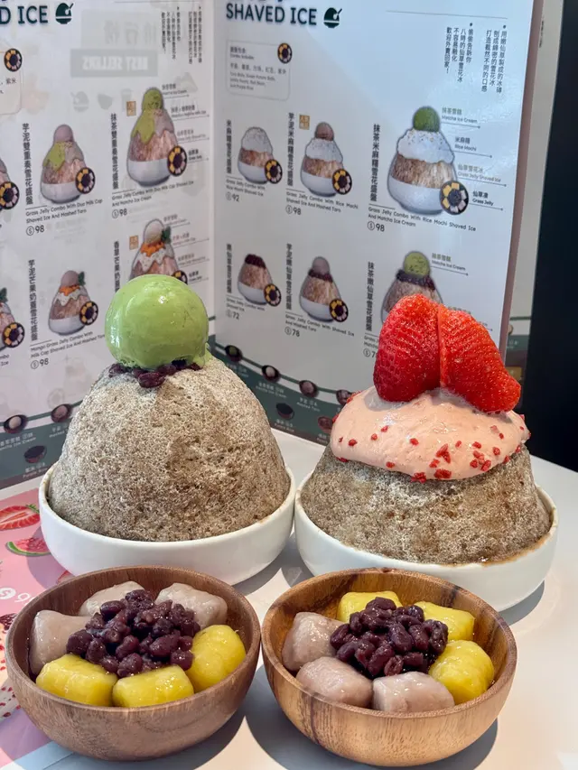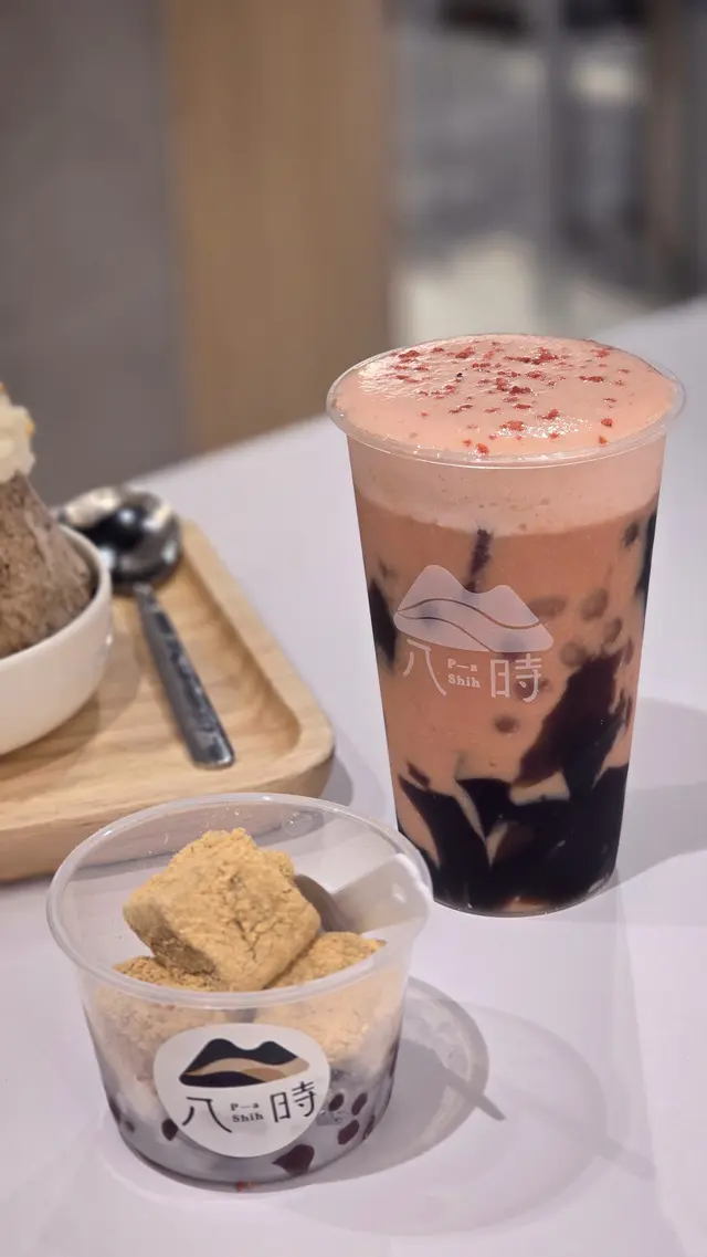 呢間嚟自台灣嘅仙草甜品店最近推出咗新品,八時紅心芭樂系列 。呢日下午茶時段嚟咗食啲清涼嘅甜品降吓溫😋米麻糬紅心芭樂甘露盛盤呢個係期間限定嘅新品,用上紅心芭樂整成嘅甘露,酸酸甜甜幾開胃。另外中心仲有米麻糬,除咗煙韌嘅口感,入面仲食到有軟化咗嘅米粒,都幾特別🍚 抹茶雙重奏雪花盛盤呢個係餐廳招牌甜品之一,用上仙草絲製成嘅雪花冰❄️ 雪花冰整得好綿密,配埋頂頭嘅抹茶同埋焙茶奶蓋真係好正✌🏻 最頂頭仲有球抹茶雪糕🍦每份甜品都有一個盛盤,有芋圓、薯圓、珍珠、紫米同埋紅豆,芋圓同埋薯圓兩款都非常煙韌🥰芒椰椰絲原味蕨餅餐廳仲推出咗加配優惠,惠顧任何甜品/刨冰,加5蚊就可以換購一份八時手工蕨餅,仲有兩種口味可以選擇。我哋就試咗幾開胃嘅芒果味,仲有椰絲包裹住蕨餅🥥 底下仲有好多芒果粒粒,$5真係幾抵。仙草凍奶茶另外呢度飲品嘅選擇都幾多,我哋揀咗呢一個奶茶,入面已經有仙草凍,仲可以免費加配白珍珠,一啖可以飲到兩個口感真係唔錯🧋呢間嘅甜品幾消暑,趁而家有期間限定嘅$5蕨餅優惠,優惠去到31/10咋,得閒過嚟食返個tea就啱晒🥰…查看更多