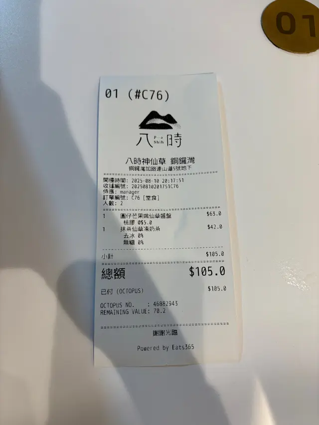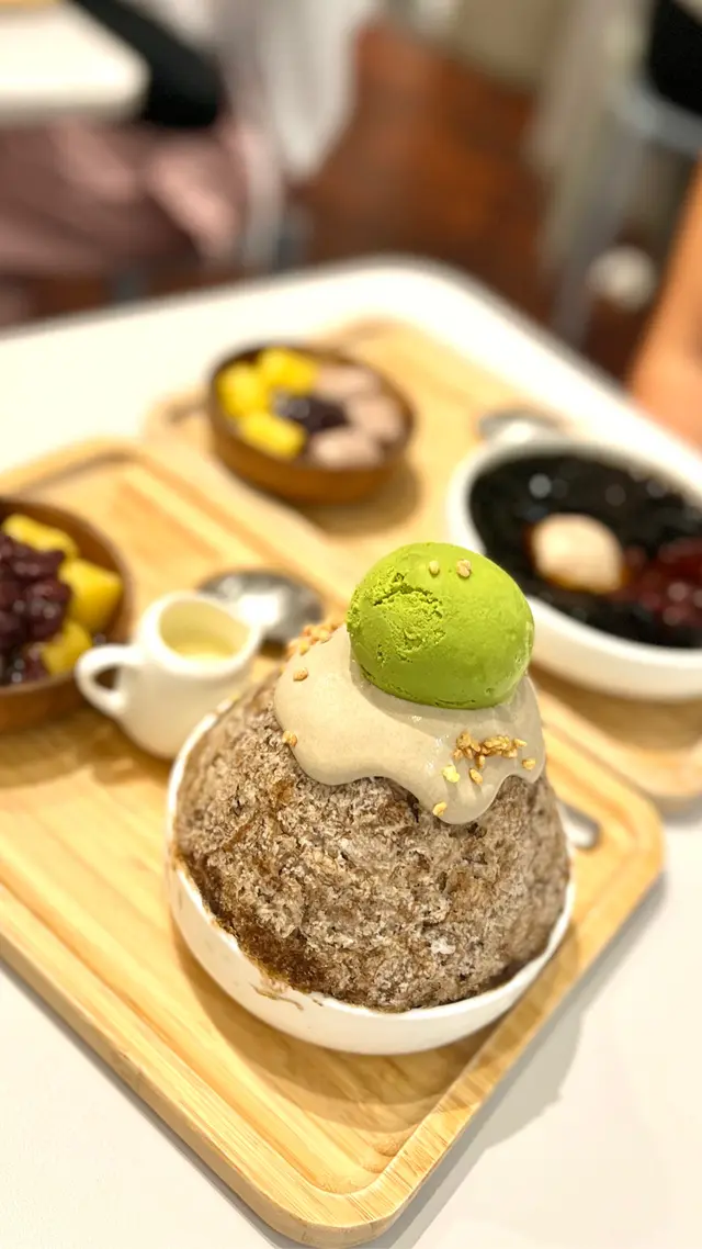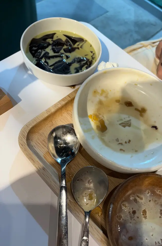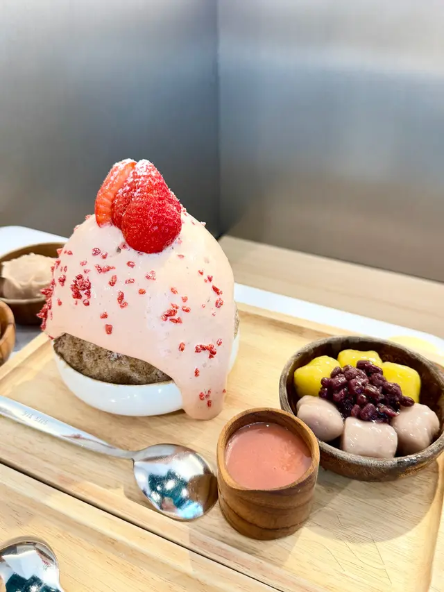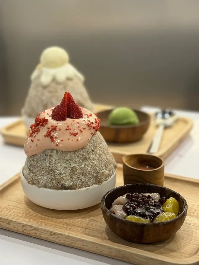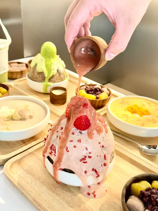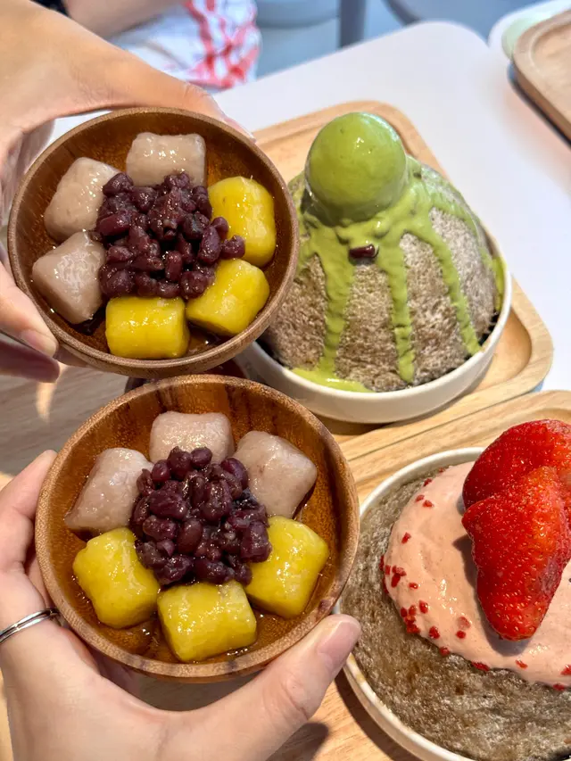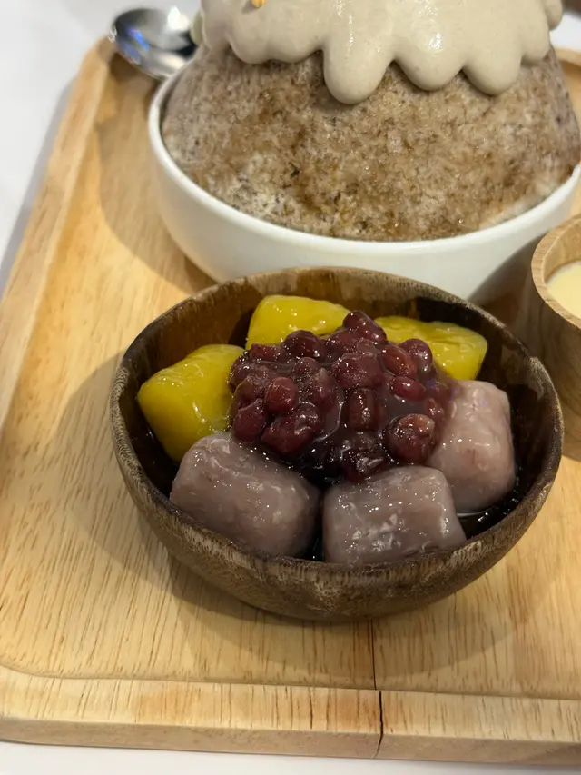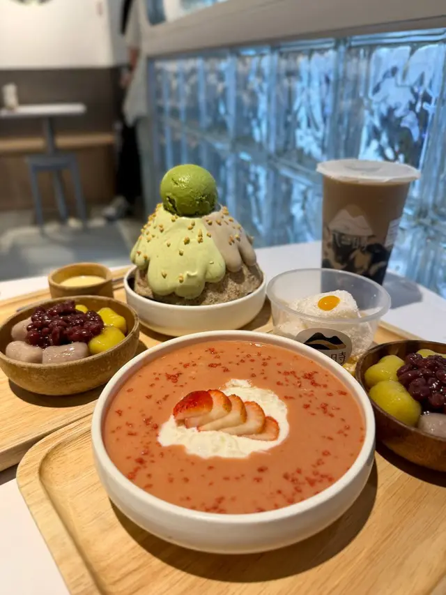 呢間嚟自台灣嘅仙草甜品店最近推出咗新品,八時紅心芭樂系列 。呢日下午茶時段嚟咗食啲清涼嘅甜品降吓溫😋米麻糬紅心芭樂甘露盛盤呢個係期間限定嘅新品,用上紅心芭樂整成嘅甘露,酸酸甜甜幾開胃。另外中心仲有米麻糬,除咗煙韌嘅口感,入面仲食到有軟化咗嘅米粒,都幾特別🍚 抹茶雙重奏雪花盛盤呢個係餐廳招牌甜品之一,用上仙草絲製成嘅雪花冰❄️ 雪花冰整得好綿密,配埋頂頭嘅抹茶同埋焙茶奶蓋真係好正✌🏻 最頂頭仲有球抹茶雪糕🍦每份甜品都有一個盛盤,有芋圓、薯圓、珍珠、紫米同埋紅豆,芋圓同埋薯圓兩款都非常煙韌🥰芒椰椰絲原味蕨餅餐廳仲推出咗加配優惠,惠顧任何甜品/刨冰,加5蚊就可以換購一份八時手工蕨餅,仲有兩種口味可以選擇。我哋就試咗幾開胃嘅芒果味,仲有椰絲包裹住蕨餅🥥 底下仲有好多芒果粒粒,$5真係幾抵。仙草凍奶茶另外呢度飲品嘅選擇都幾多,我哋揀咗呢一個奶茶,入面已經有仙草凍,仲可以免費加配白珍珠,一啖可以飲到兩個口感真係唔錯🧋呢間嘅甜品幾消暑,趁而家有期間限定嘅$5蕨餅優惠,優惠去到31/10咋,得閒過嚟食返個tea就啱晒🥰…查看更多