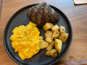 我幾乎每隔幾日都會黎食個早餐呢間cafe專賣牛角包仲有d 咖啡等等的野飲咁佢有個set係牛頭包 + 其他食物(任選2款/5款) + 野飲好推薦去到食呢個set!我每次都會叫唔同既牛角包佢有around 十零種選擇好多都好有特色大部分都試過最鐘意都係《蜂巢牛角包》(下圖)但佢所有牛角包都偏凍同硬好似放耐左咁通常我會叫多2款食物:炒蛋同茄汁豆(下圖)不得不提佢個炒蛋真係超好食!點解可以咁滑(即炒的)另有蘑菇、腸仔同蕃茄等選擇 都唔錯的試過有次叫5款就食齊每種食物另外野飲我每次只叫《Iced Hojicha Latte》大推!係日式焙茶鮮奶咖啡口味淡淡地 偏甜…查看更多