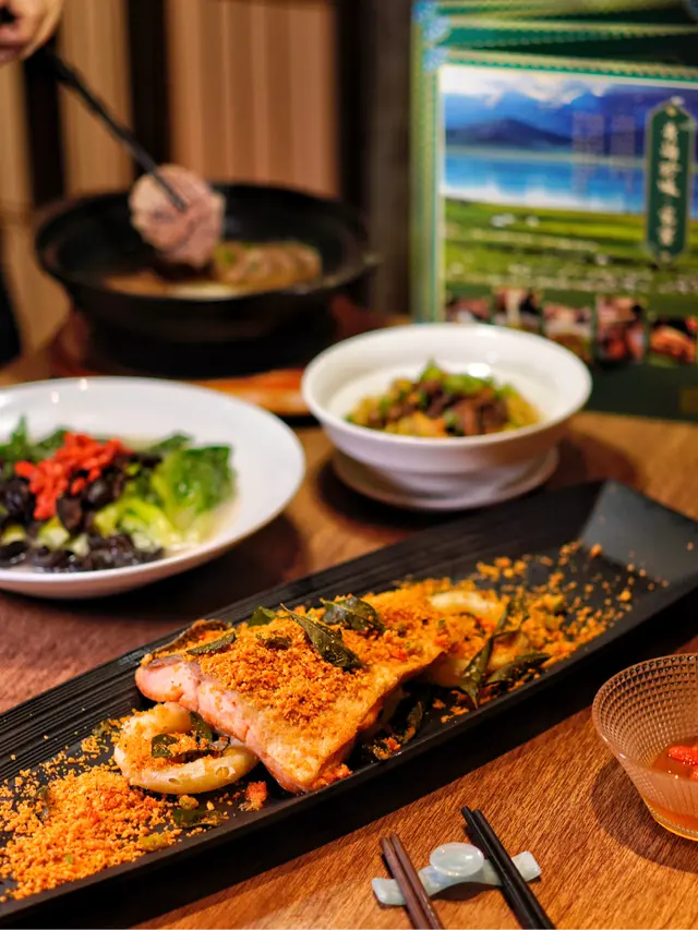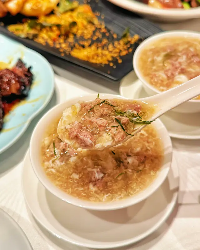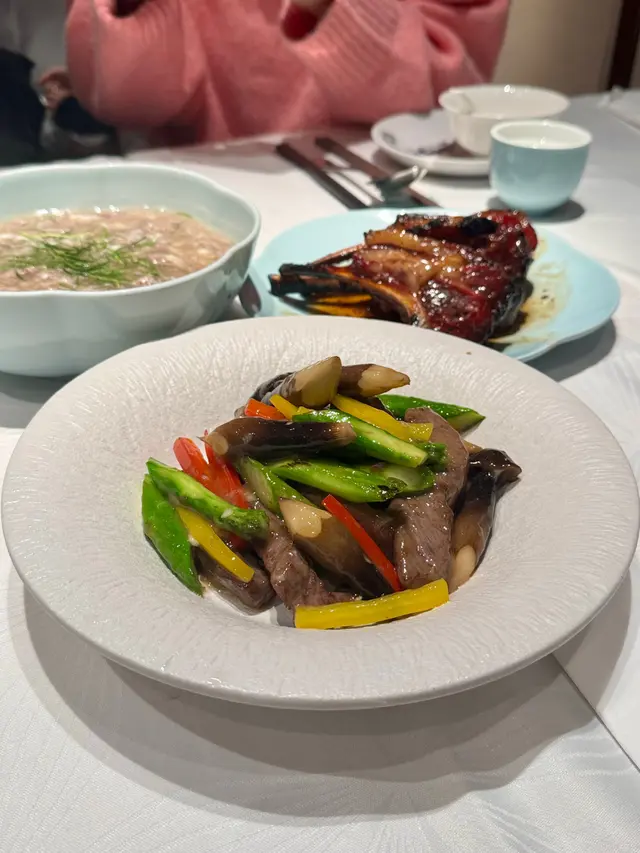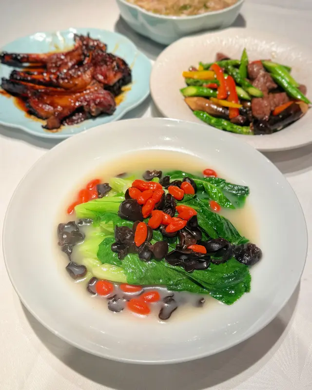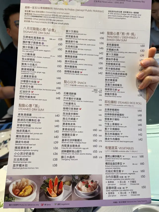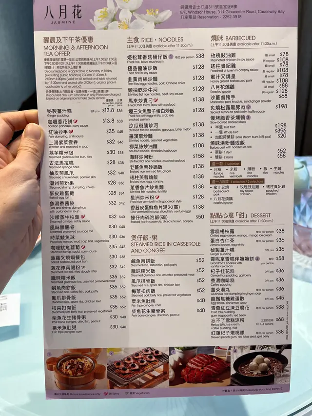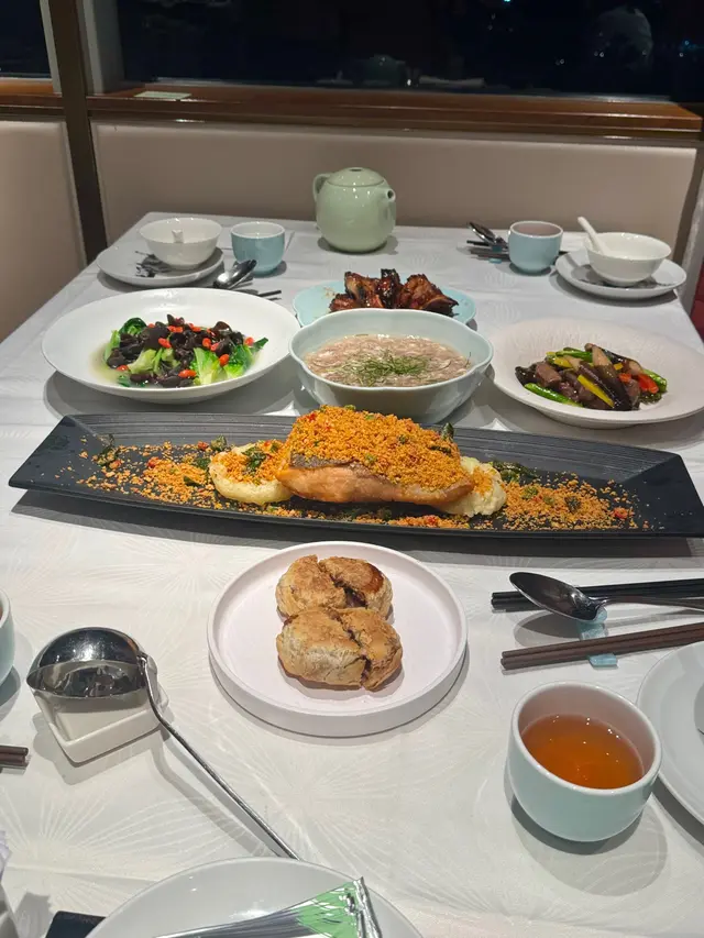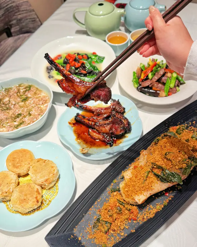 今日去咗銅鑼灣八月花食午餐,環境真係幾舒服,座位寬敞企理,落地玻璃窗望到街景,配合園林風嘅裝飾,好有都市綠洲嘅感覺🌿。背景音樂輕柔,連洗手間都有手機架,好貼心!午餐時段氣氛輕鬆,適合同朋友或者家人聚會。掛爐蜜味藏羊排呢道藏羊排用咗粵式叉燒嘅做法,外層焦糖化得好香脆,肉質嫩滑多汁,羶味輕淡唔會搶味,帶有淡淡蜜香,食落去好有層次感,真係一試難忘👍。姬松茸香菇桶仔飯飯粒吸滿菌菇鮮味,松露香氣撲鼻,底部有金黃脆飯焦,好有口感,配埋爽口嘅醃蘿蔔,整體唔會太油膩,健康又滋味,十分推薦🍄。避風塘青海三文魚扒三文魚煎得皮脆肉嫩,避風塘嘅香辣味道帶出魚嘅鮮甜,口感豐富又惹味,好啱配白飯,食完好滿足😋。…查看更多