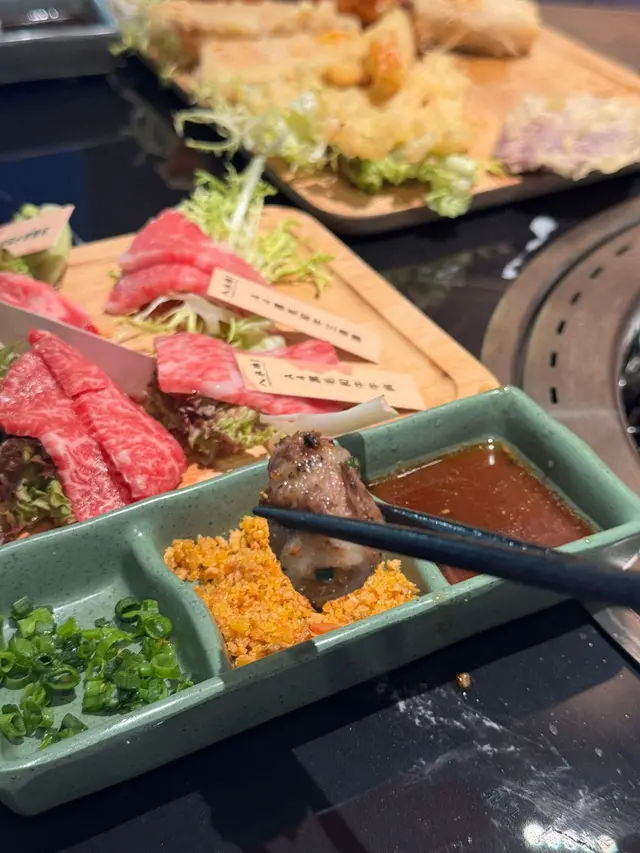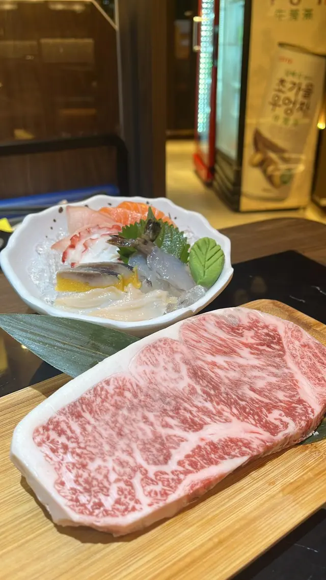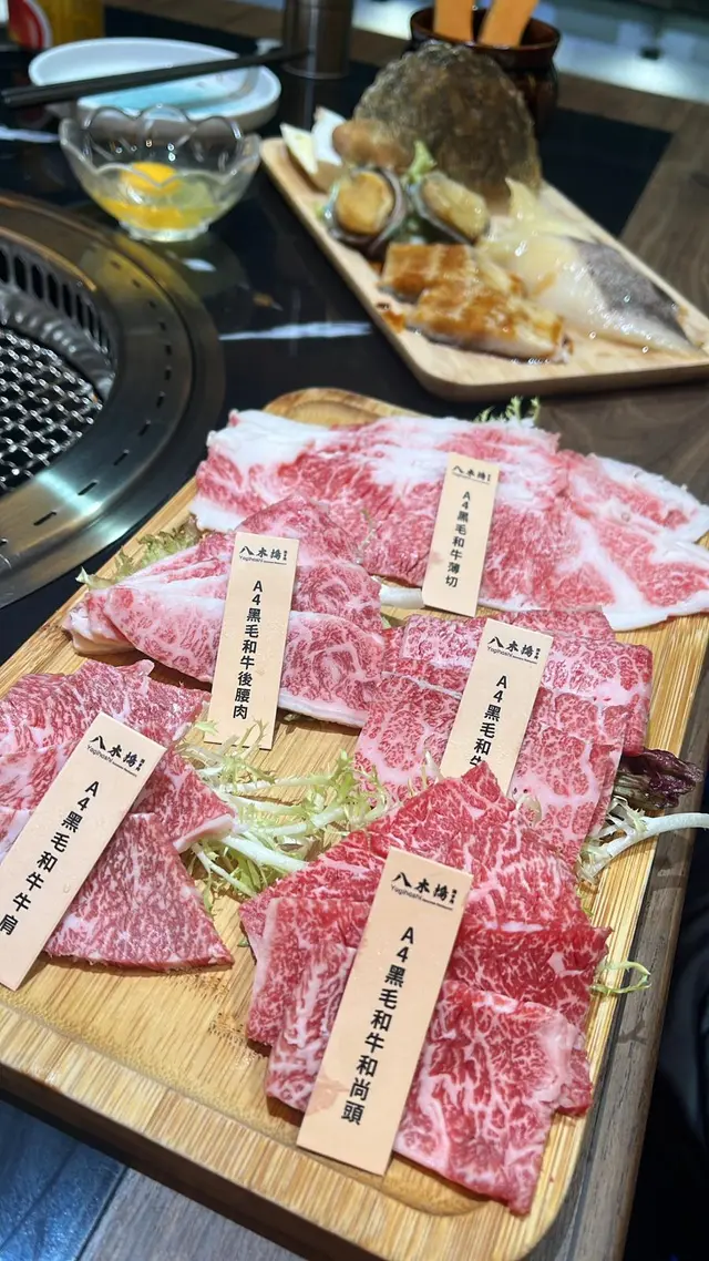 話說前排去咗八木橋試佢個日本A4和牛任食套餐,食完真心要同大家分享,因為性價比高到嚇親人!一落單無耐,盤A4和牛就好靚仔咁上枱!啲雪花分佈靚到好似藝術品一樣,油花均勻,睇見都流口水。放上爐度燒,啲油「滋滋聲」咁響,香味即刻撲鼻而來!燒到五成熟左右就食得,一入口——嘩!真係即!化!囉!個種濃郁嘅牛油香味充滿成個口,肉質軟嫩到不得了,完全唔使點咬,個種油脂感真係邪惡到極點,但又令人忍唔住一塊接一塊咁燒!食和牛食到飽,呢個願望終於實現!估唔到除咗牛,啲海鮮都咁出色!比目魚燒到兩面金黃,魚肉超嫩滑,一啲都唔腥。生蠔都好肥美,燒完之後依然Keep到好多汁,好鮮甜!最驚喜係連鮑魚都有得任食,燒完之後爽口彈牙,唔會韌,鮮味十足。食完濃味嘅和牛,再食啲清甜嘅海鮮,個感覺正好!以任食套餐來計,八木橋真係交足功課。由頂級嘅A4和牛,到高質嘅海鮮同羊架,款款都有水準,完全冇因為係任食而將貨就價。服務同環境都唔錯,換網都換得幾密。如果你係大胃王,又係和牛同海鮮嘅忠實Fans,咁呢個「八木橋」嘅任食套餐,真係抵食到癲,絕對要Bookmark試一次,保證你滿足到捧住個肚走!…查看更多