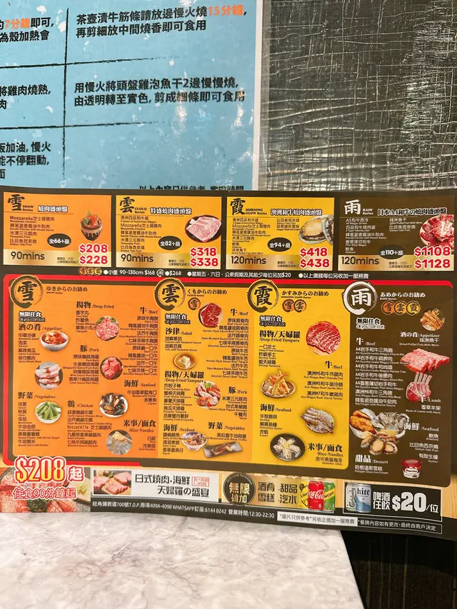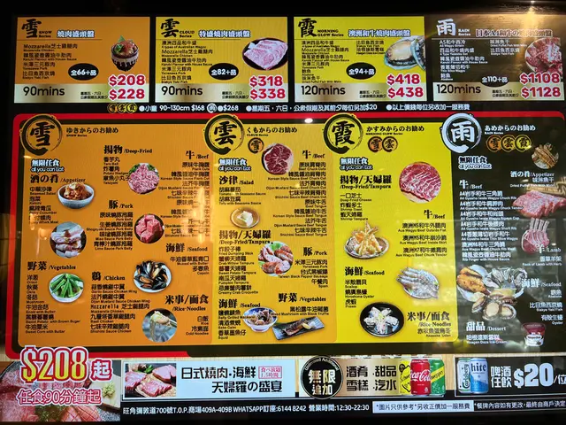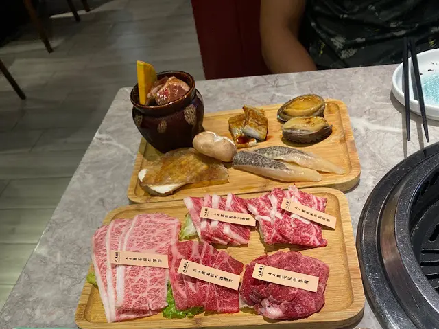 ## 食評:放工後的A4和牛放題放工後,我同老婆決定去試下A4和牛放題,呢間餐廳真係好有質素,值得一試!### 環境與服務首先,餐廳環境幾好,氣氛輕鬆,適合放鬆心情。服務員態度友善,幫助我們解釋菜單,對於選擇不同肉類和醬汁都有詳細介紹,令人感覺貼心。### 食物評價1. **肉類**: - 今次我哋選擇咗「雨」餐。佢哋先嚟咗個拼盤。有A5和牛西冷,仲有各種部位的A4和牛,每一片肉都切厚薄適中,燒肉時幾乎瞬間就熟,口感滑嫩。特別推薦韓風瓷壺牛肋肉,味道好入味,香氣四溢,仲有和牛啲油花,食落去真係好幸福。各款牛舌同燒雞軟骨都係大推之選。好,唔該2. **小食**: - 小食方面,炸物表現亦相當好。我特別鍾意佢嘅香芋丸同蟹肉可樂餅,炸得外脆內軟,味道相當好。燒比目魚、白鱔同埋雞泡魚乾都好美味,鮮味十足,配埋醬油食,簡直無法抵擋。3. **海鮮**: - 蠔和鮑魚的鮮味都非常足,食落去彈牙,令人一口接一口,真係好開心。4. **醬汁**: - 餐廳提供多款醬汁,可以混合搭配,增加食物風味,真係為肉類增添唔少風味,建議大家多試幾款。5. **甜品**: - 不過,美中不足嘅係當天冇雪糕或者雪條,我哋只能點佢嘅忌廉泡芙同蕨餅。泡芙香滑可口,蕨餅則係清新口感,都算唔錯。### 總體評價總結嚟講,呢間A4和牛放題真係質素高,價錢合理,仲有半價優惠,食物選擇豐富,令我哋十分滿足。…查看更多