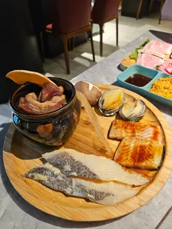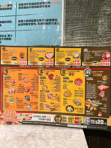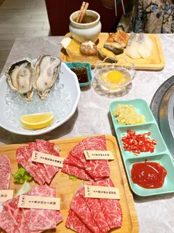 今日出糧,想好好獎勵下自己,對自己好啲,點咗佢哋嘅‘雨’Set,食物質素真係無得彈,絕對值回票價。 ‘雨’Set嘅頭盤真係好有誠意,份量多而且質素高。首先,A4黑毛和牛燒肉盛頭盤就已經贏咗我一半心。包括咗A4黑毛和牛後腰肉、和牛薄切、三角腩、牛肩、同埋尚頭幾個部位,每件肉都切得好靚,油花分佈均勻,燒完之後入口即溶,係嗰種你食完會不自覺發出哇!嘅感覺。三角腩同尚頭尤其值得一讚,因為口感層次豐富,肉香同油香完美平衡,真係食到人都想拍手掌。 仲有A5和牛西冷,睇返相都覺得出色,係精品級數。A5和牛嘅肉質更加細嫩,脂肪分佈得勻稱,燒到焦香嘅時候,入口果種牛油味真係令人沉醉。 韓風瓷壺醬油牛肋肉係一個幾特別嘅選擇,醃製得好入味,帶少少鹹甜嘅風味,燒到微微焦香嘅時候,仲多咗一層煙燻味,幾過癮。 另外,海鮮方面都有驚喜。新鮮飽魚、魚干同比目頭西京燒都做得好出色。飽魚係鮮甜中帶有少少煙燻香,魚干就係鹹香滿分,加埋燒過嘅比目頭西京燒,味道濃郁得嚟又唔會過鹹,全部野都好新鮮! 佢哋仲有+$30任食刺身嘅選項,不過因為頭盤嘅量都唔少,我覺得食唔曬咁多,所以無追加。雖然覺得有少少可惜,但以我胃口嚟講,真係未必頂得住。 除咗套餐內嘅食物,我仲追加咗幾樣燒物,包括即食生蠔、燒沙嗲生蠔、虎蝦同埋剪半嘅雞中翼。即食生蠔非常鮮甜,啲蠔肉飽滿得嚟仲帶少少海水味,加啲檸檬汁更加提鮮。燒沙嗲生蠔就係另一種風味,燒過之後啲蠔肉帶少少焦香,再加上沙嗲醬嘅鹹香味,幾有創意!虎蝦亦都係必試之選,燒到啲蝦殼微微焦脆,蝦肉鮮甜彈牙,唔需要任何醬料都已經好好味。至於剪半嘅雞中翼,真係方便食好多,而且燒出嚟啲皮脆肉嫩,調味亦都剛剛好,鹹香得嚟又唔會過重口味,絕對係配啤酒嘅好選擇。 野飲係自助式,汽水,茶,本土野都有(唔記得影相比大家參考下)…查看更多