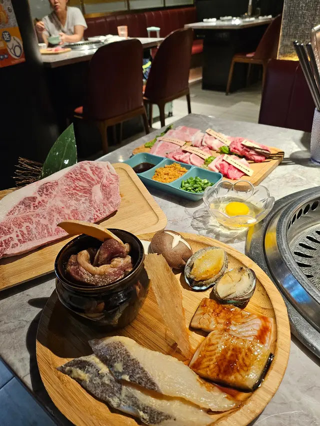 ## 食評:放工後的A4和牛放題放工後,我同老婆決定去試下A4和牛放題,呢間餐廳真係好有質素,值得一試!### 環境與服務首先,餐廳環境幾好,氣氛輕鬆,適合放鬆心情。服務員態度友善,幫助我們解釋菜單,對於選擇不同肉類和醬汁都有詳細介紹,令人感覺貼心。### 食物評價1. **肉類**: - 今次我哋選擇咗「雨」餐。佢哋先嚟咗個拼盤。有A5和牛西冷,仲有各種部位的A4和牛,每一片肉都切厚薄適中,燒肉時幾乎瞬間就熟,口感滑嫩。特別推薦韓風瓷壺牛肋肉,味道好入味,香氣四溢,仲有和牛啲油花,食落去真係好幸福。各款牛舌同燒雞軟骨都係大推之選。好,唔該2. **小食**: - 小食方面,炸物表現亦相當好。我特別鍾意佢嘅香芋丸同蟹肉可樂餅,炸得外脆內軟,味道相當好。燒比目魚、白鱔同埋雞泡魚乾都好美味,鮮味十足,配埋醬油食,簡直無法抵擋。3. **海鮮**: - 蠔和鮑魚的鮮味都非常足,食落去彈牙,令人一口接一口,真係好開心。4. **醬汁**: - 餐廳提供多款醬汁,可以混合搭配,增加食物風味,真係為肉類增添唔少風味,建議大家多試幾款。5. **甜品**: - 不過,美中不足嘅係當天冇雪糕或者雪條,我哋只能點佢嘅忌廉泡芙同蕨餅。泡芙香滑可口,蕨餅則係清新口感,都算唔錯。### 總體評價總結嚟講,呢間A4和牛放題真係質素高,價錢合理,仲有半價優惠,食物選擇豐富,令我哋十分滿足。…查看更多