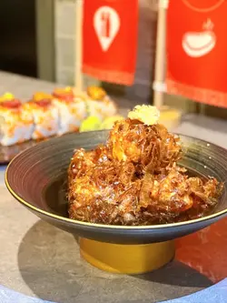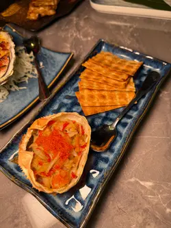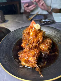 人大咗就少咗見朋友,會珍惜每一次見面。今次同一位多年冇見嘅朋友見面,就同佢食佢好中意食嘅日本菜。八焱居酒屋環境寬敞,員工非常友善又體貼👍🏼✿ 八焱卷 $128卷物十分高級😳表面有海膽同埋燒過嘅鵝肝,卷物裡面有青瓜🥒生菜🥬魷魚🦑材料十分豐富,海膽都算新鮮,魷魚同樣。✿ 土佐豆腐 $68表面有大量木魚,木魚連同豆腐一齊油炸,十分香口,豆腐外脆內軟,湯汁系味噌湯,豆腐吸收後濃郁非常。✿ 紫蘇雞皮蝦 $58紫蘇葉係日本菜常見食材,香氣獨特。原隻蝦用雞皮包住,雞皮爽脆,而且蝦肉新鮮🦐✿ 黃金焗蠔 $68即是芝士焗蠔🦪芝味非常🧀蠔肉肥美且飽滿,店員話可以食一半,另外一半汁用黎撈沙律食🥗仲食到煙肉碎🥓確實不錯👍🏼✿ 日本雞頸肉 $38雞頸肉口感實在,外皮焦香,裡面略帶油脂。✿ 甲羅燒 $88甲羅燒配鱈魚乾,甲羅燒喺日本菜當中向來好受歡迎,將蟹籽,蟹肉,蟹膏混合後,再沾上鱈魚乾,鮮味非常🦀✿ 牛肉稻庭烏冬 $108牛肉系似平時食戈種壽喜燒牛肉,肉質肥美,稻庭烏冬索曬湯汁充滿日式風味~…查看更多