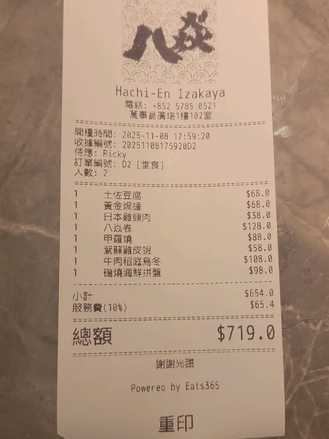 八焱居酒屋 (尖沙咀) 網上訂座享$100優惠兼賺Rice Dollars 網址: https://s.openrice.com/QrbS0GL0F00 地址: 香港尖沙咀寶勒巷3-7A號萬事昌廣場1樓102號舖 電話: +852 57850521