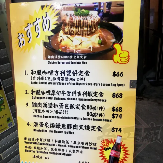 旺角高質港式日式餐廳 cady9162等級42020-04-18414 瀏覽 關注 今日又到旺角搵好西食既時候啦❗️❗️行開通菜街比呢間八福個門口吸引左😍😍定食會包個前菜同野飲,細細碟幾好雞肉漢堡扒蛋包飯(2塊)$74雞蛋🥚好滑,配合埋咖喱🍛汁好味,咖哩係日式咖哩,甜甜地,好味,一個字正👍🏻👍🏻當然個重點係個雞肉漢堡啦,大大舊,好多肉汁,好彩加左$6 要多左舊,兩舊食完大滿足😍😍😍😍😍😍😍誠意推薦👍🏻👍🏻滑蛋炙燒鰻魚豚肉叉燒定食$74 $74 有鰻魚食好抵,又幾入味,叉燒就不過不失啦😍😍好味…查看更多+ 2以上食評乃用戶個人意見 , 並不代表OpenRice之觀點。讚好分享旺角高質港式日式餐廳 八福 https://s.openrice.com/QrbT0yS2S00檢舉 張貼 評分5味道4環境4服務4衛生5抵食推介美食雞肉漢堡扒蛋包飯定食(2塊)$74雞肉漢堡扒蛋包飯(2塊)$74滑蛋炙燒鰻魚豚肉叉燒定食$74用餐途徑堂食