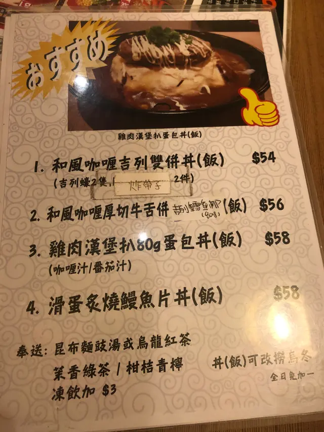 午餐抵食好味又多選擇 MaxEating等級32020-11-19798 瀏覽 關注 午飯時間過左女人街呢邊食野,見呢間午餐花款都比較多,價錢合理,就入左嚟食。午餐價錢平均50幾60蚊左右,午餐嚟講唔算平不過佢啲野食係好食又多餸既。叫左個日式咖喱牛舌拼吉列炸魚柳飯,野飲叫凍茉莉綠茶。飯都算大碗,男仔一般都唔會唔夠食。佢啲牛舌大塊夠冧,加埋咖喱汁唔錯。吉列魚柳夠脆,入面塊魚同平時出面食既唔多大分別。綠茶普普通通,冇咩特別comment 俾到。整體嚟講個午餐算ok,呢個價錢下既質素算唔錯。環境算正正常常唔會好逼,Lunch 時段係唔錯既選擇…查看更多以上食評乃用戶個人意見 , 並不代表OpenRice之觀點。讚好分享午餐抵食好味又多選擇 八福 https://s.openrice.com/QrbT0M0Cx00檢舉 張貼 評分3味道3環境3服務3衛生3抵食用餐途徑堂食