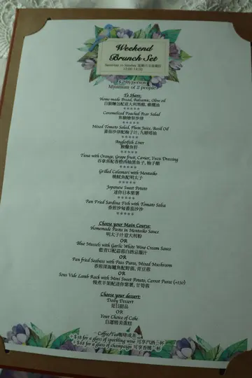 每人一半的確唔夠喉咸點方面有個三文魚配明太子,吞拿魚,蟹子蟹肉餅,甜番薯仔,三文魚玫瑰花,帶子(酸酸地嘅汁配埋幾好食)甜點就有朱古力冬甩,馬卡龍,朱古力蛋糕,兩件撻,同兩件雪葩 食到大概六點店員都開始佈置夜晚嘅餐桌 餐巾都會摺成玫瑰花呢度坐得好舒服 相信會再嚟食多次 …查看更多