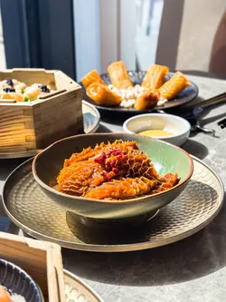 六公館坐擁優越的維多利亞海景,環境時尚典雅,透過大窗戶,可以欣賞到壯麗的海景和城市天際線,打造非凡的用餐體驗。無論是中午的陽光灑落,還是夜晚的璀璨燈火,同樣令人心醉。水晶蝦餃/六公館小籠包蝦餃晶瑩剔透,包裹著新鮮的蝦仁,入口鮮香爽彈。小籠包飽滿多汁,盛著鮮美的肉餡,咬開後湯汁四溢,美味開胃。白花魚肚厚身的魚肚,口感滑順,加上鮮香的蝦滑及飛魚籽,滑溜之餘,鮮美滋味。竹炭流沙包外皮柔軟,內餡是香濃的流沙醬,輕輕一咬,奶黃瞬間流出,帶來鹹蛋黃香氣。黑豚叉燒腸粉 腸粉柔軟,黑豚叉燒的香氣濃郁,肉質鮮嫩,倒上甜豉油,令人回味。千絲蘿蔔酥 層次分明的酥皮,內裡的蘿蔔絲香甜可口,香氣撲鼻,感受到傳統點心的魅力。金網鵝肝蝦卷 外皮酥脆,伴以鵝肝的香氣,金網的香脆口感令人驚喜,內餡豐富的蝦肉,口感脆卜卜。桂花杞子桃膠 桃膠晶瑩,口感Q彈,散發桂花的清香,甜度天然柔和,養顏窩心。欖菜金柱炒飯 炒飯充滿鑊氣,粒粒分明,瑤柱的鮮味和欖菜的鹹香,豐富的口感,暖笠笠感覺。…查看更多