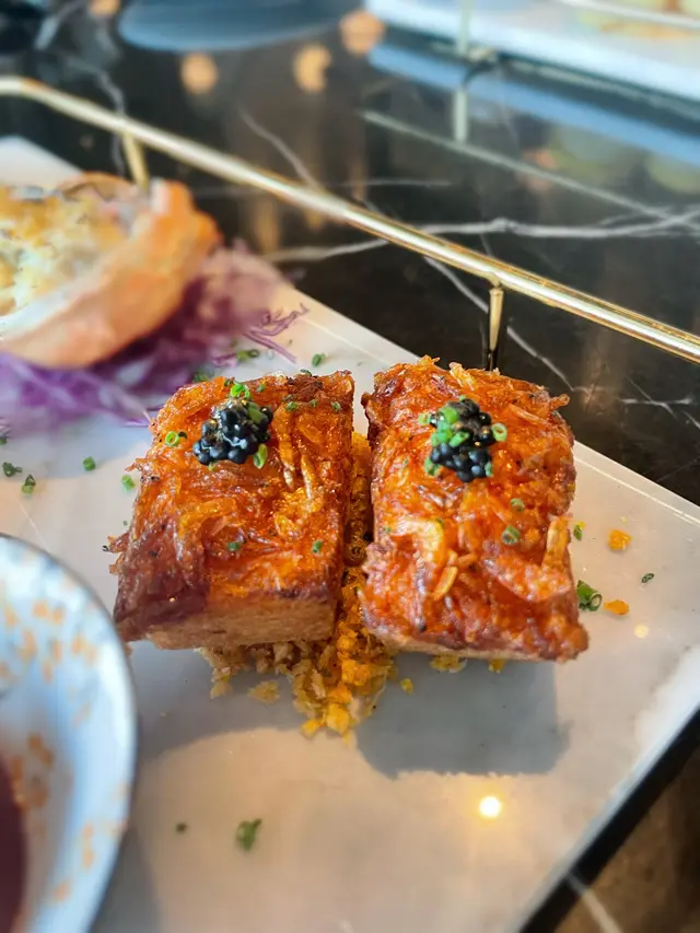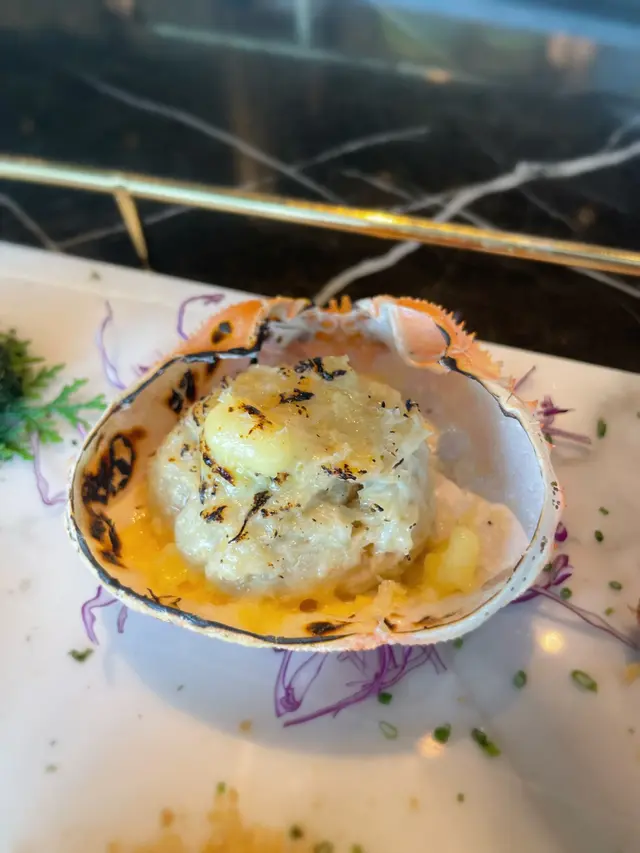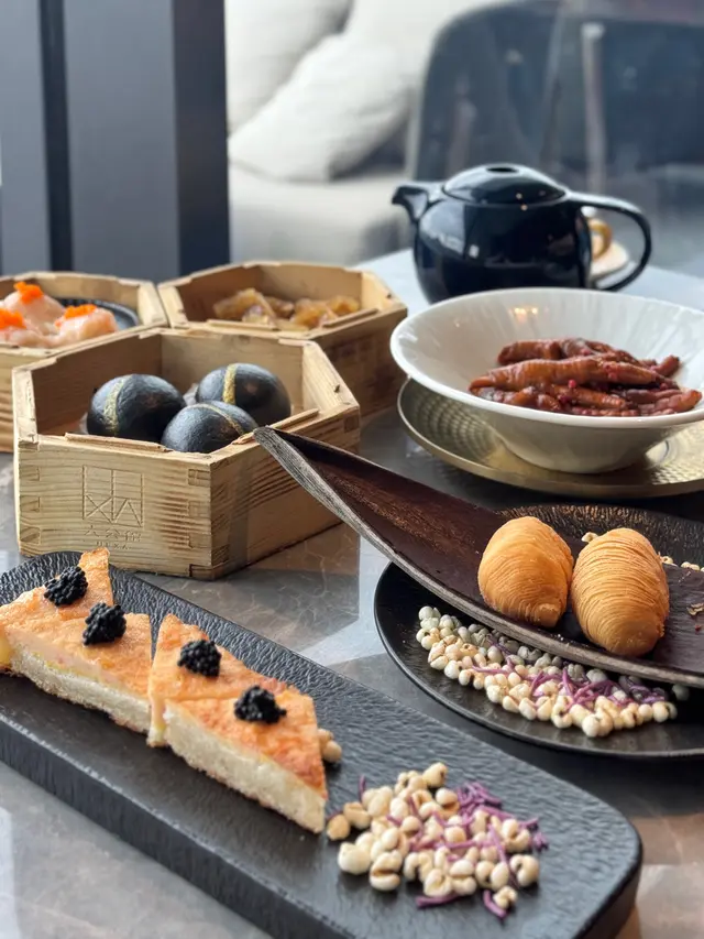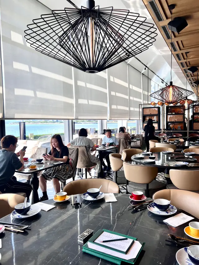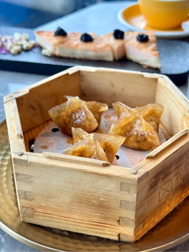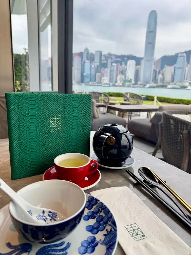 得知「六公館」推出了晚市套餐,可以一次過品嚐多款匠心菜式,今天特意帶媽咪來享受一頓溫馨晚餐💖 「六公館」位於尖沙咀海港城海旁,坐擁270度維港醉人景致🌉,景色開揚迷人,室內用餐區或室外位置都能欣賞維港景色❤️,打打卡📸,而室內裝潢時尚雅緻,融入古典韻味,營造出舒適而富格調的用餐氛圍☺️餐廳主打新派粵菜,巧妙融合傳統和創新❣️ 晚市套餐包括頭盤、湯品🥣、4款主菜、主食🍚及甜品,款式豐富🤩 🔹️頭盤1️⃣牛油果金槍魚咸蛋酥酥脆的咸蛋酥放上綿密的牛油果🥑和鮮美的金槍魚🐟,咸蛋🥚增添鹹香與濃郁風味,口感層次豐富。2️⃣龍眼蜜燒西班牙黑豚叉燒西班牙黑豚肉本身風味濃郁🐷,叉燒燒得焦脆燶邊,叉燒肥瘦適中,肉質軟腍多汁,外層塗上天然甘香的龍眼蜜🍯,入口充滿蜜香,好yummy‼️ 3️⃣巴旦木焗南瓜件南瓜焗至微焦🎃,口感綿密,散發天然甘甜,配搭輕脆的巴旦木,即是杏仁,整體味道清新🤗。 🔹️湯鮮茄松茸頭貴妃舌湯底清澈卻味道層次分明,鮮茄🍅帶來微酸果香,提升整體鮮味;松茸頭🍄🟫香氣濃郁,質感爽滑;貴妃舌🦪則嫩滑彈牙,入口細膩。 🔹️主菜1️⃣老菜甫蒜燻䱽魚經蒜香🧄與煙燻♨️處理後,甘香鮮嫩的魚肉🐟滲入煙薰香,魚肉肉質細嫩,散發濃郁香氣,老菜甫鹹香微甘,與魚肉的鮮味互相融合,色香味俱全🥰 2️⃣燒椒醬法蔥煎本地青龍龍蝦肉質鮮甜彈牙🦞,煎至微焦,外層微脆,內裡嫩滑,法蔥清香柔和🌱,加上燒椒醬🌶帶來的微辣與煙燻香氣,整體味道和口感都豐富。3️⃣野菜黑糖燉牛肋骨牛肋骨經慢火燉煮🐮,廚師更將肋骨拆肉去骨,啖啖都是肉,肉質軟腍入味,肉汁濃厚而不膩,黑糖帶出微甜焦香,野菜🥬🫛可以平衡整體口感與油膩感。4️⃣鹽水沙蜆清湯浸地瓜苗沙蜆以鹽水🧂煮出天然鮮味,湯底清澈透亮,地瓜苗嫩綠爽口🥬,吸收蜆湯精華後更添甘甜🥣,入口滑順。 🔹️主食十三香鳳肝燉飯鳳肝經由13種香料調配而成的香料醃製後煎香🔥,外層微脆,內裡嫩滑,散發濃郁肝香,燉飯充分吸收香鳳肝的精華,米飯粒粒分明🍚又飽滿入味,口感豐富,整體味道濃郁帶甘😉。 🔹️甜品紫薯蜂巢酥紫薯蜂巢🍠🪹酥外層酥皮炸至金黃酥脆,呈蜂巢狀,口感鬆化,內餡選用香甜的紫薯泥🍠,口感綿密細膩,入口先酥後軟,甜而不膩🤗。 整個晚市套餐由頭盤到甜品,每一道菜式都展現出廚師的心思與巧手💫,味道層次分明👍🏻。期待下次再來「六公館」‼️…查看更多