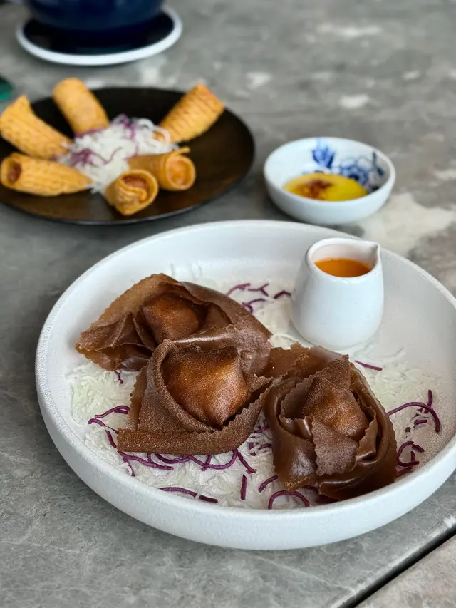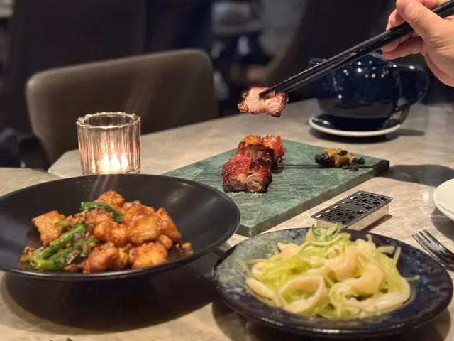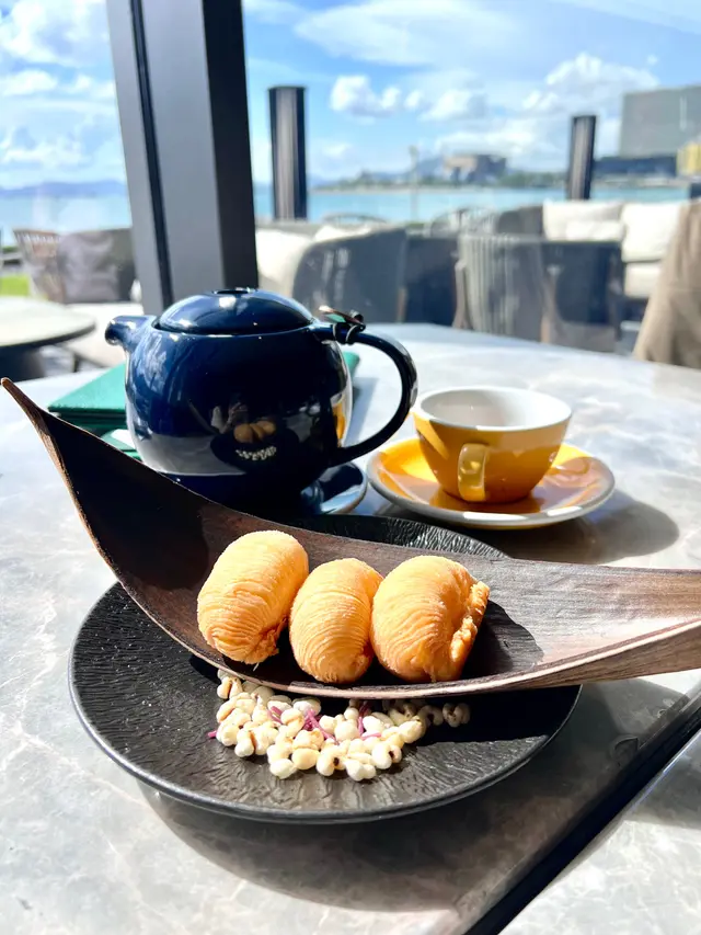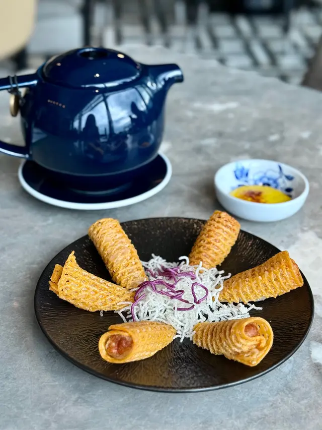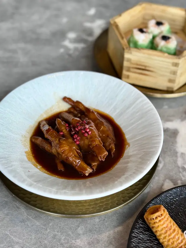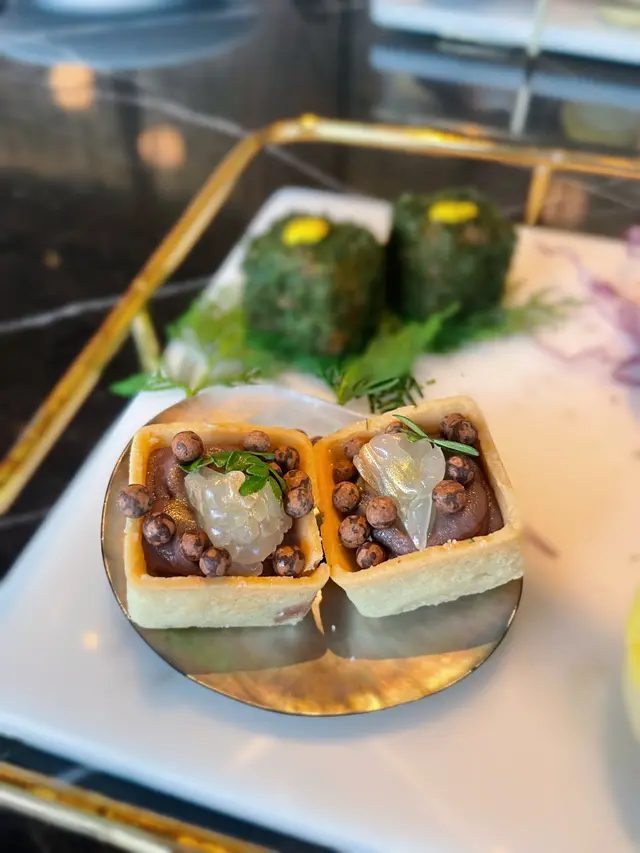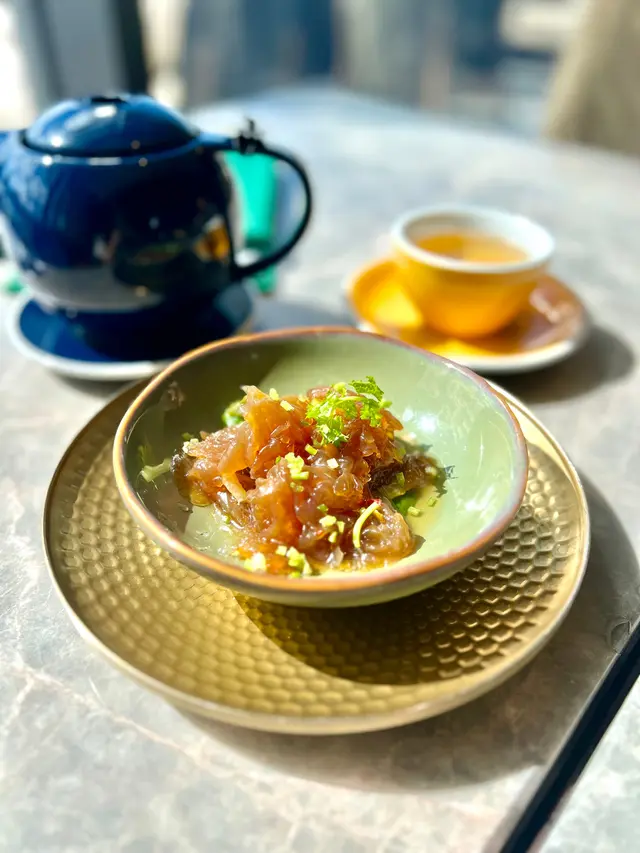 得知「六公館」推出了晚市套餐,可以一次過品嚐多款匠心菜式,今天特意帶媽咪來享受一頓溫馨晚餐💖 「六公館」位於尖沙咀海港城海旁,坐擁270度維港醉人景致🌉,景色開揚迷人,室內用餐區或室外位置都能欣賞維港景色❤️,打打卡📸,而室內裝潢時尚雅緻,融入古典韻味,營造出舒適而富格調的用餐氛圍☺️餐廳主打新派粵菜,巧妙融合傳統和創新❣️ 晚市套餐包括頭盤、湯品🥣、4款主菜、主食🍚及甜品,款式豐富🤩 🔹️頭盤1️⃣牛油果金槍魚咸蛋酥酥脆的咸蛋酥放上綿密的牛油果🥑和鮮美的金槍魚🐟,咸蛋🥚增添鹹香與濃郁風味,口感層次豐富。2️⃣龍眼蜜燒西班牙黑豚叉燒西班牙黑豚肉本身風味濃郁🐷,叉燒燒得焦脆燶邊,叉燒肥瘦適中,肉質軟腍多汁,外層塗上天然甘香的龍眼蜜🍯,入口充滿蜜香,好yummy‼️ 3️⃣巴旦木焗南瓜件南瓜焗至微焦🎃,口感綿密,散發天然甘甜,配搭輕脆的巴旦木,即是杏仁,整體味道清新🤗。 🔹️湯鮮茄松茸頭貴妃舌湯底清澈卻味道層次分明,鮮茄🍅帶來微酸果香,提升整體鮮味;松茸頭🍄🟫香氣濃郁,質感爽滑;貴妃舌🦪則嫩滑彈牙,入口細膩。 🔹️主菜1️⃣老菜甫蒜燻䱽魚經蒜香🧄與煙燻♨️處理後,甘香鮮嫩的魚肉🐟滲入煙薰香,魚肉肉質細嫩,散發濃郁香氣,老菜甫鹹香微甘,與魚肉的鮮味互相融合,色香味俱全🥰 2️⃣燒椒醬法蔥煎本地青龍龍蝦肉質鮮甜彈牙🦞,煎至微焦,外層微脆,內裡嫩滑,法蔥清香柔和🌱,加上燒椒醬🌶帶來的微辣與煙燻香氣,整體味道和口感都豐富。3️⃣野菜黑糖燉牛肋骨牛肋骨經慢火燉煮🐮,廚師更將肋骨拆肉去骨,啖啖都是肉,肉質軟腍入味,肉汁濃厚而不膩,黑糖帶出微甜焦香,野菜🥬🫛可以平衡整體口感與油膩感。4️⃣鹽水沙蜆清湯浸地瓜苗沙蜆以鹽水🧂煮出天然鮮味,湯底清澈透亮,地瓜苗嫩綠爽口🥬,吸收蜆湯精華後更添甘甜🥣,入口滑順。 🔹️主食十三香鳳肝燉飯鳳肝經由13種香料調配而成的香料醃製後煎香🔥,外層微脆,內裡嫩滑,散發濃郁肝香,燉飯充分吸收香鳳肝的精華,米飯粒粒分明🍚又飽滿入味,口感豐富,整體味道濃郁帶甘😉。 🔹️甜品紫薯蜂巢酥紫薯蜂巢🍠🪹酥外層酥皮炸至金黃酥脆,呈蜂巢狀,口感鬆化,內餡選用香甜的紫薯泥🍠,口感綿密細膩,入口先酥後軟,甜而不膩🤗。 整個晚市套餐由頭盤到甜品,每一道菜式都展現出廚師的心思與巧手💫,味道層次分明👍🏻。期待下次再來「六公館」‼️…查看更多