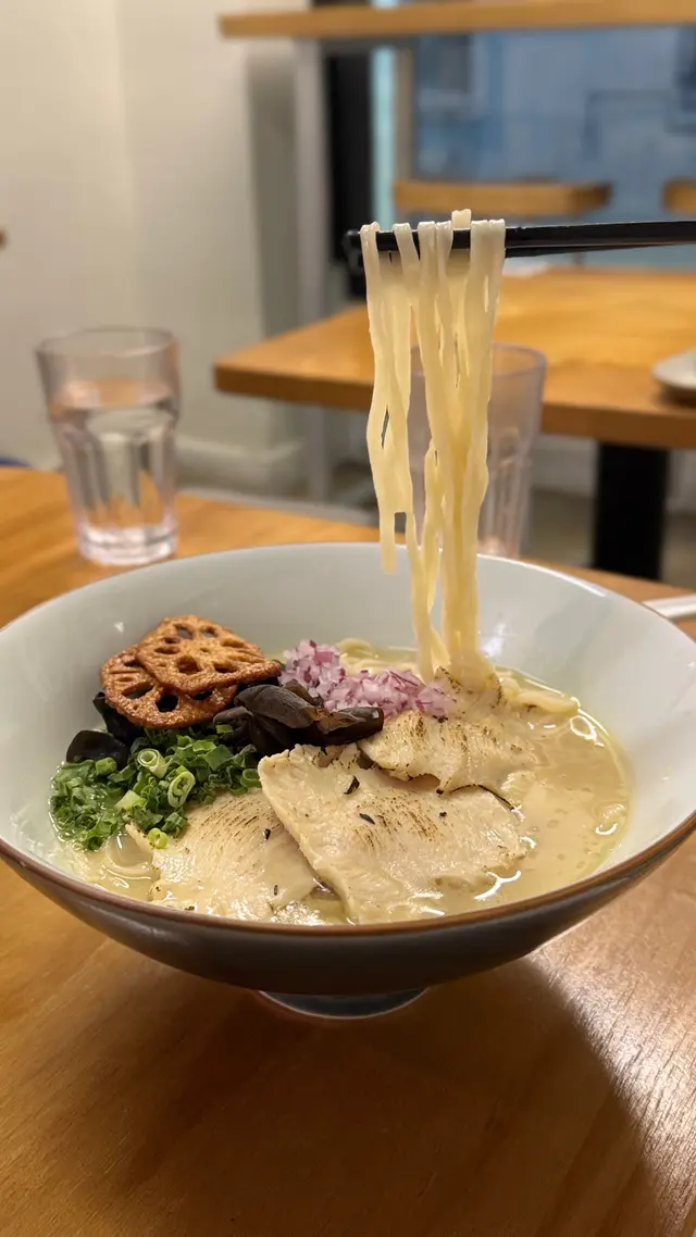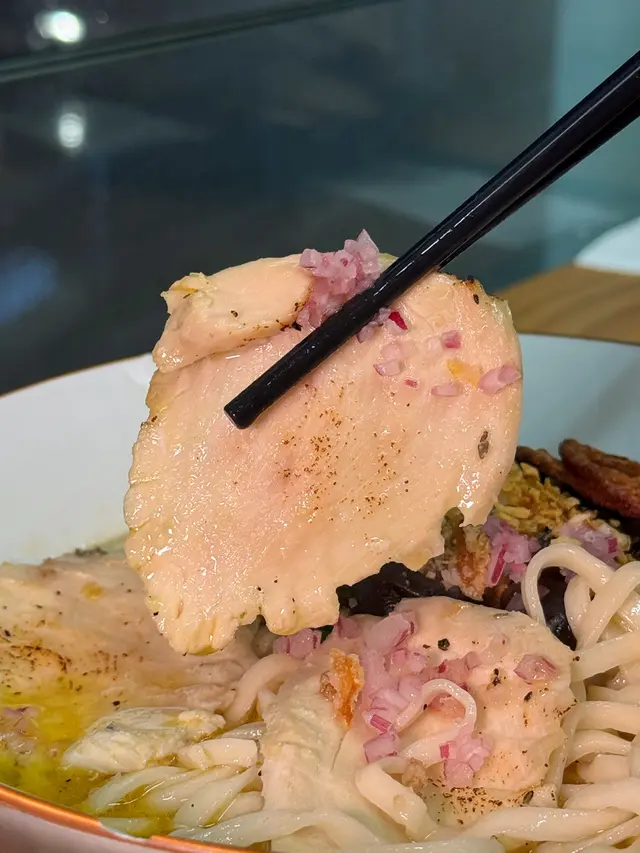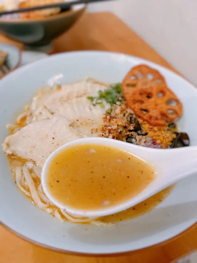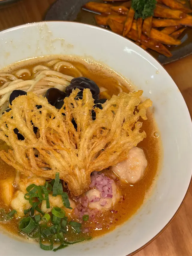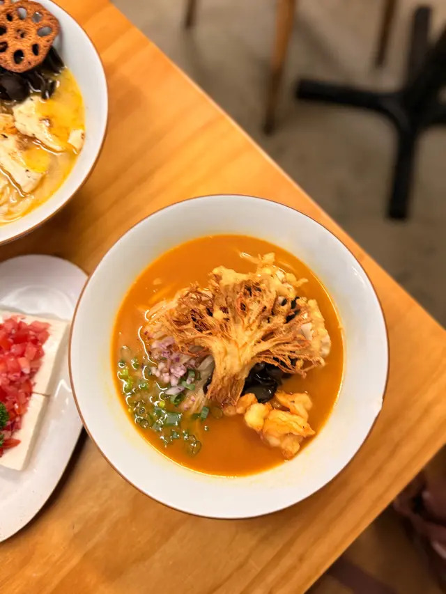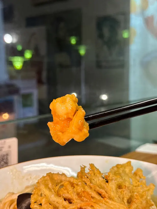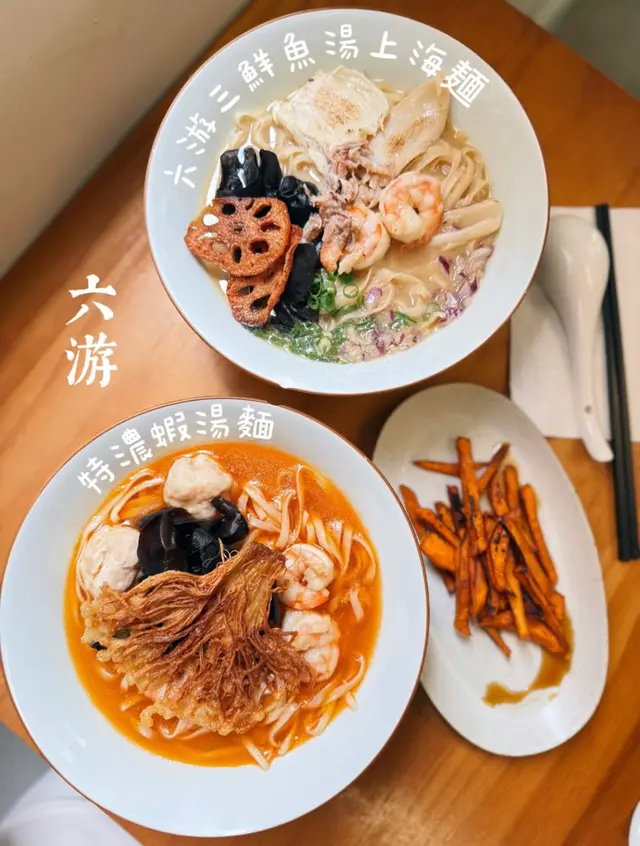 🇭🇰 Central 中環|Lookout 六游Come eat with me at this hidden noodles spot with no MSG! Chewy noodles, flavourful broth and lots of ingredients, who can resist? 🥴There are three soup bases they offer: chicken soup, shrimp soup and fish soup, all very flavourful. Here are what we tried: • 𝐒𝐡𝐫𝐢𝐦𝐩 𝐍𝐨𝐨𝐝𝐥𝐞𝐬 𝐒𝐨𝐮𝐩 特濃蝦湯手工上海麵 🦐A bold, fresh shrimp broth 😋 with no MSG, yet packed with intense shrimp flavour. The noodles had a perfect bite, and the toppings made every spoonful satisfying!• 𝐒𝐩𝐢𝐜𝐲 𝐂𝐡𝐢𝐜𝐤𝐞𝐧 𝐍𝐨𝐨𝐝𝐥𝐞𝐬 𝐒𝐨𝐮𝐩 A lighter, milder broth loaded with toppings 🤪— including three slices of tender, juicy chicken breast.Spiciness level just mild, just enough to warm you up without overpowering the flavours.🙃• 𝐂𝐚𝐫𝐚𝐦𝐞𝐥 𝐒𝐰𝐞𝐞𝐭 𝐏𝐨𝐭𝐚𝐭𝐨This really surprised me with how crunchy 😙those sweet potatoes were and the mildly sweet caramel sauce poured on top! 😊Definitely a hidden gem worth checking out if you’re around Central!💎📍Central, Graham St, 45A號1/F💲Price per person: $135.5 HKD…查看更多