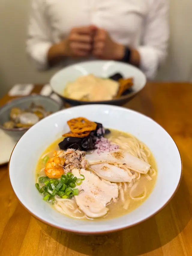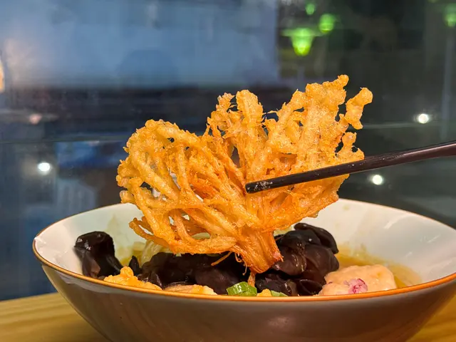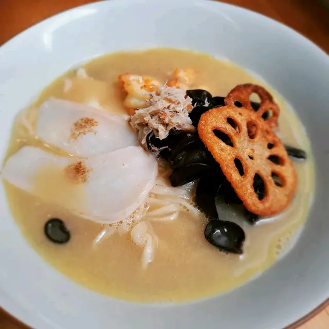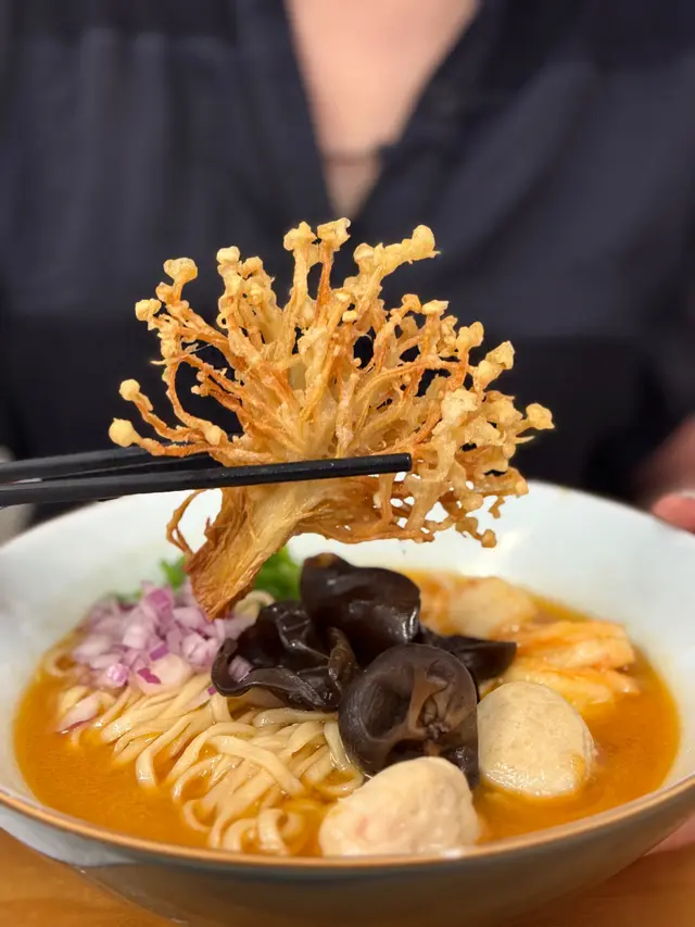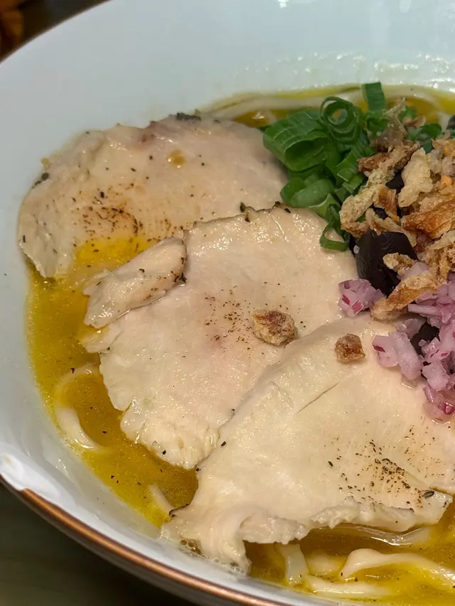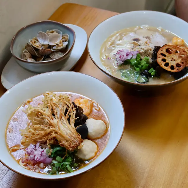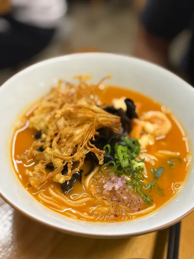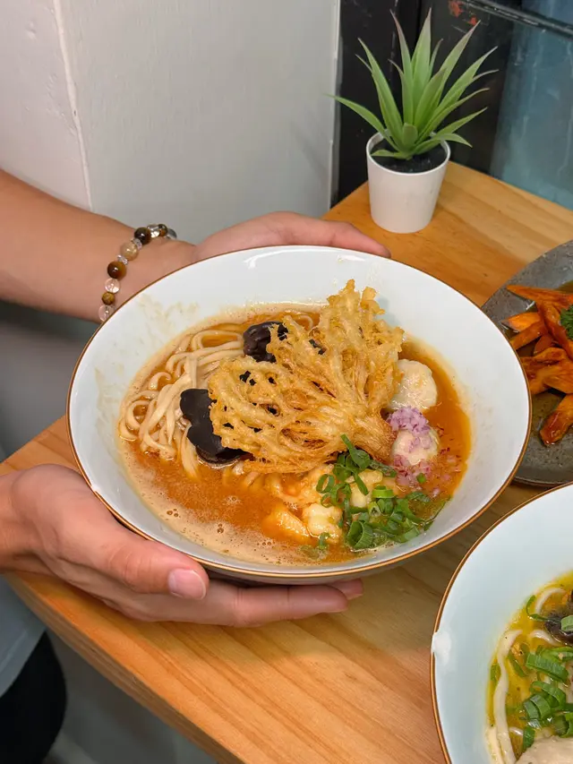 🇭🇰 Central 中環|Lookout 六游Come eat with me at this hidden noodles spot with no MSG! Chewy noodles, flavourful broth and lots of ingredients, who can resist? 🥴There are three soup bases they offer: chicken soup, shrimp soup and fish soup, all very flavourful. Here are what we tried: • 𝐒𝐡𝐫𝐢𝐦𝐩 𝐍𝐨𝐨𝐝𝐥𝐞𝐬 𝐒𝐨𝐮𝐩 特濃蝦湯手工上海麵 🦐A bold, fresh shrimp broth 😋 with no MSG, yet packed with intense shrimp flavour. The noodles had a perfect bite, and the toppings made every spoonful satisfying!• 𝐒𝐩𝐢𝐜𝐲 𝐂𝐡𝐢𝐜𝐤𝐞𝐧 𝐍𝐨𝐨𝐝𝐥𝐞𝐬 𝐒𝐨𝐮𝐩 A lighter, milder broth loaded with toppings 🤪— including three slices of tender, juicy chicken breast.Spiciness level just mild, just enough to warm you up without overpowering the flavours.🙃• 𝐂𝐚𝐫𝐚𝐦𝐞𝐥 𝐒𝐰𝐞𝐞𝐭 𝐏𝐨𝐭𝐚𝐭𝐨This really surprised me with how crunchy 😙those sweet potatoes were and the mildly sweet caramel sauce poured on top! 😊Definitely a hidden gem worth checking out if you’re around Central!💎📍Central, Graham St, 45A號1/F💲Price per person: $135.5 HKD…查看更多