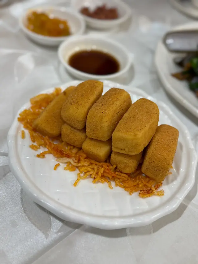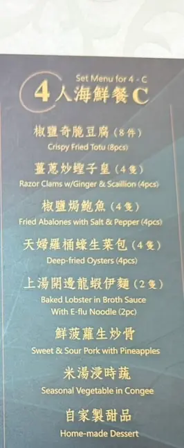 今日同朋友聚會,入咗西貢一間米芝蓮一星🌟嘅中菜館,佢哋已經連續16年拎米芝蓮,好勁呀,今日就一行四個人試吓佢哋嘅四人海鮮餐,入邊一共有八款菜式。🍽️椒鹽奇趣豆腐外皮煎得好脆,入邊嘅豆腐好嫩滑,椒鹽味道啱啱好。🍽️薑蔥炒蟶子皇平時出邊都係豉椒炒,呢度用咗薑蔥炒,幾新鮮,薑蔥突顯咗蟶子嘅鮮味,都幾夾🍽️椒鹽焗鮑魚鮑魚勁大隻,用椒鹽焗好少見,不過配搭出嚟嘅味道又唔錯,佢哋嘅鮑魚好易入口,一啲都唔韌🦪天婦羅桶蠔生菜包桶蠔真係超大隻,咬落去好鮮甜,粒粒飽滿,炸得都好好食,配埋生菜包會冇咁炸,好好食🦞上湯開邊龍蝦伊麵龍蝦超大隻,每人可以有半邊龍蝦,龍蝦肉有好多,肉質鮮甜又彈牙,上湯嘅味道都調得啱啱好,夾埋伊麵食,真係食唔停口🐷鮮菠蘿生炒骨酸酸甜甜,炸得好脆,好好味,份量又多🥬米湯浸時蔬套餐又點少得蔬菜呢,佢哋用咗米湯浸都幾特別,蔬菜吸滿湯汁,好夠味套餐最後仲有佢哋自家製嘅甜品,係椰汁糕,入邊仲有椰子肉,好有心思♥️呢個四人餐真係好豐富,食得好飽,佢哋嘅煮法全部都好好味,果然係西貢屹立咗咁多年嘅星級中菜館,環境舒適,員工都好Nice!如果入嚟西貢嘅話,我都幾推薦呢一間中餐廳👍🏻…查看更多